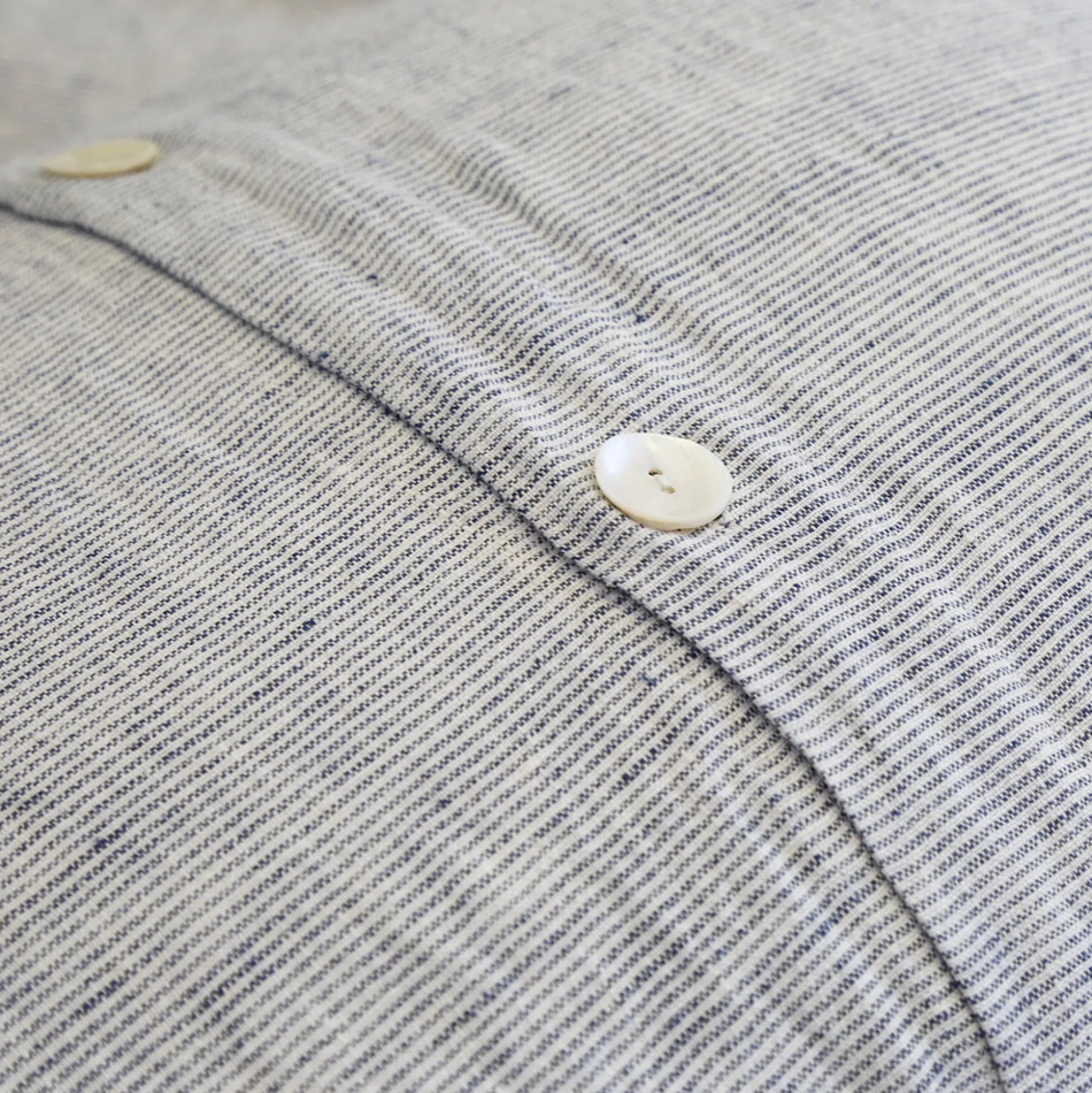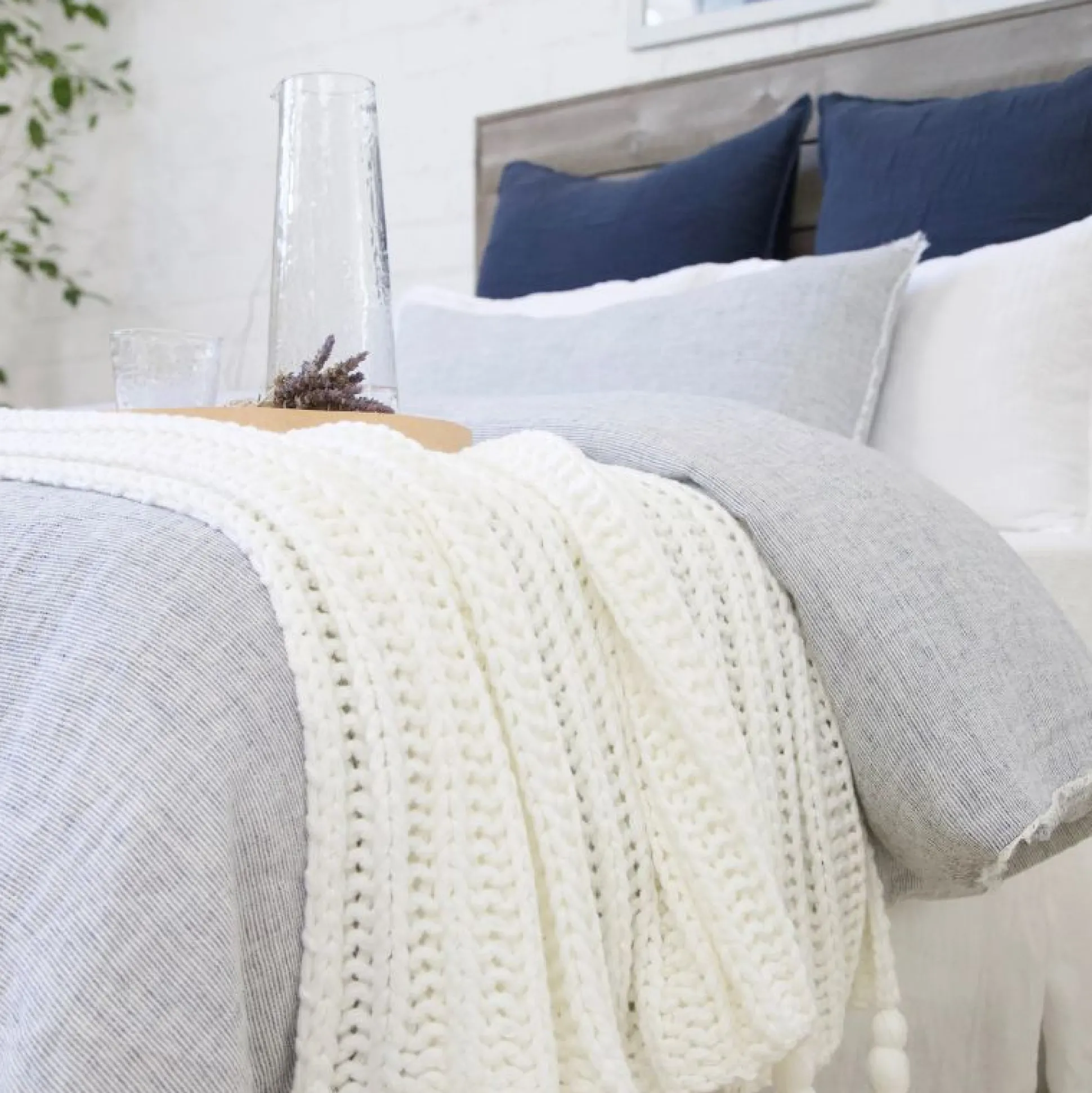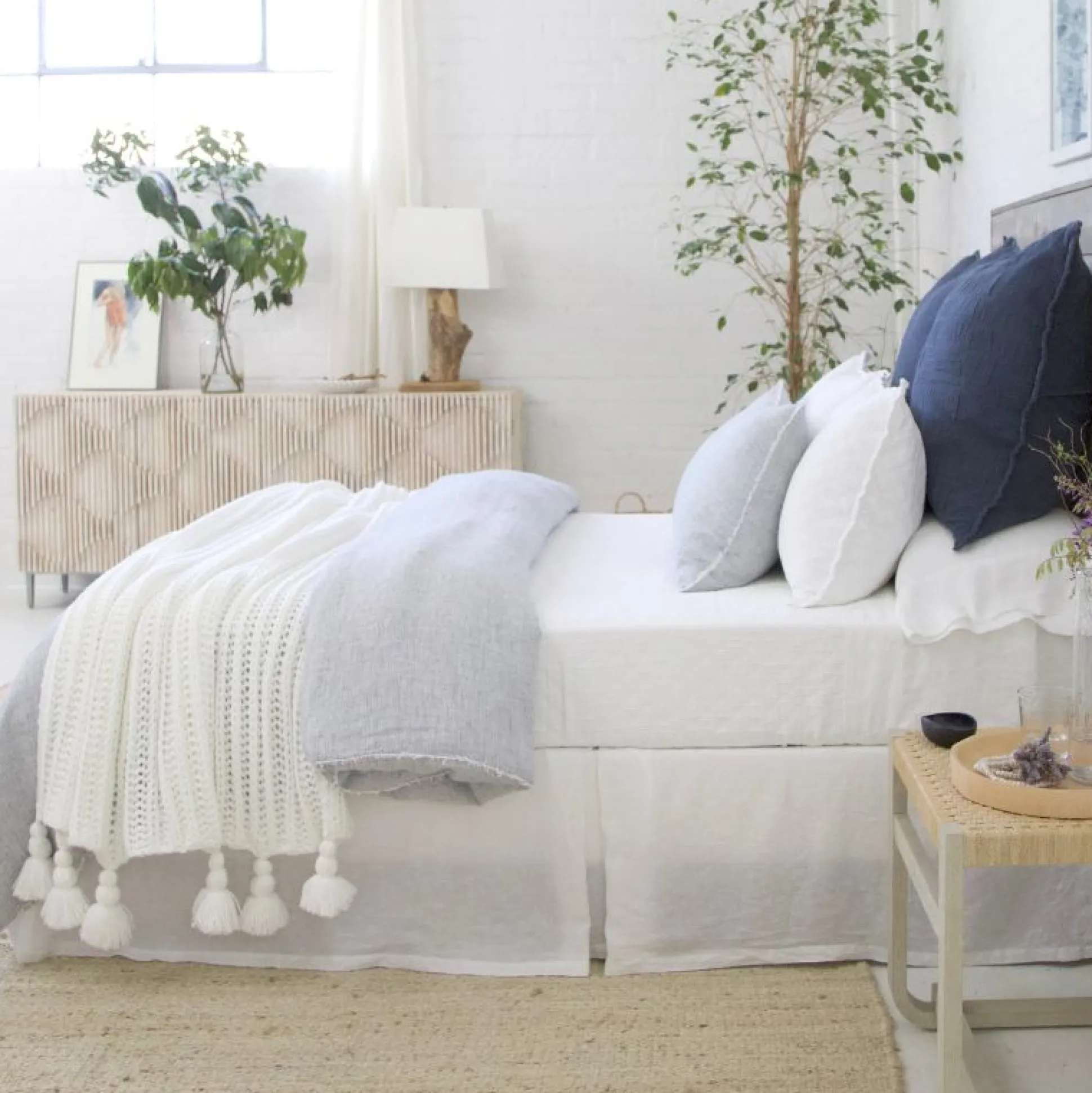 Subtle frayed edges of soft linen add a dash of unexpected detail to this Logan Collection. Woven with two different colored yarns for a heathered effect, the duvet cover and shams feature shell button closures.