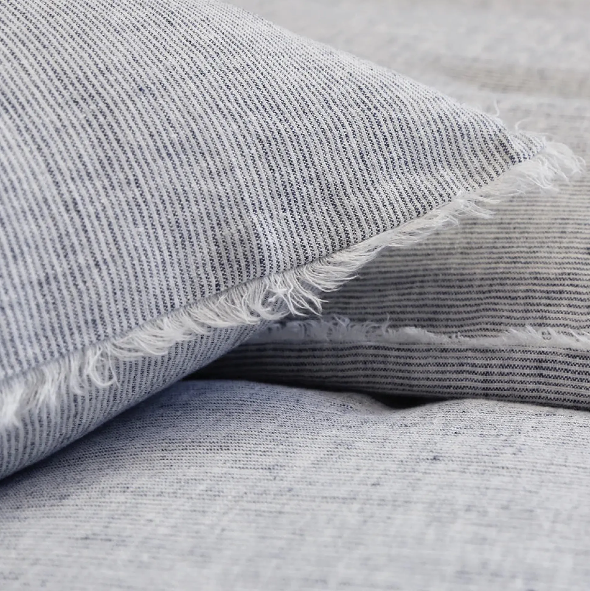 Subtle frayed edges of soft linen add a dash of unexpected detail to this Logan Collection. Woven with two different colored yarns for a heathered effect, the duvet cover and shams feature shell button closures.