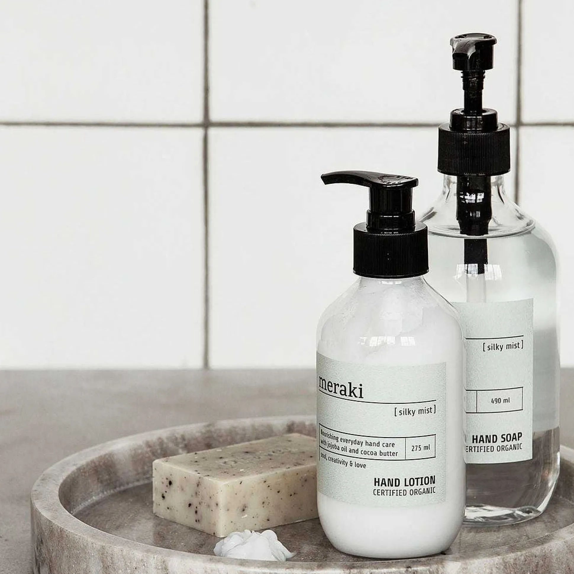 Be good to your hands with a caring hand lotion which both moisten and soften the hands. This certified organic hand lotion, Silky mist, from Meraki is perfect to apply after doing dishes or whenever the hands need extra care. Due to its beautiful wrapping and size, it is obvious to place it by the sink, next to the hand soap. Our lotion contains organic aloe vera, jojoba oil and cocoa butter and is suitable for all skin types. Note: Combine with a wall mounting for practical storage.