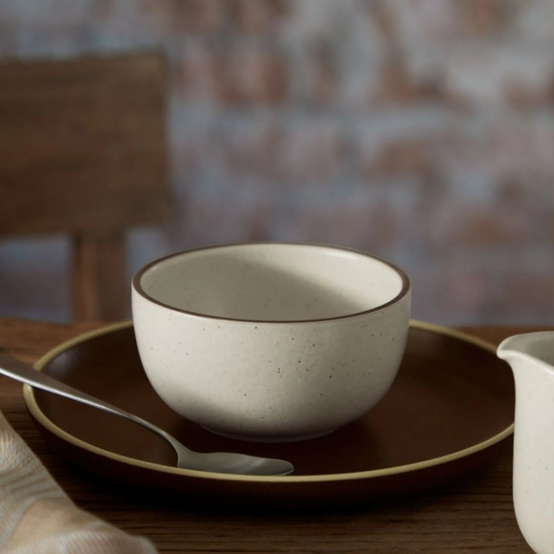 The small and great detailed finishes of Monterosa distinguish the collection to a superior level with its sleek matte sophistication. Tiny, detailed speckles gleam from the surface, while the lustrous handmade rim combines yet contrasts the two tones of light and dark. The ode to Scandinavian and Japanese clean minimalist styles calls for inspiration to the senses. Its simplicity and cleanliness differentiate Monterosa to fit any gathering. Design your table to highlight the rawness and pureness of the collection.