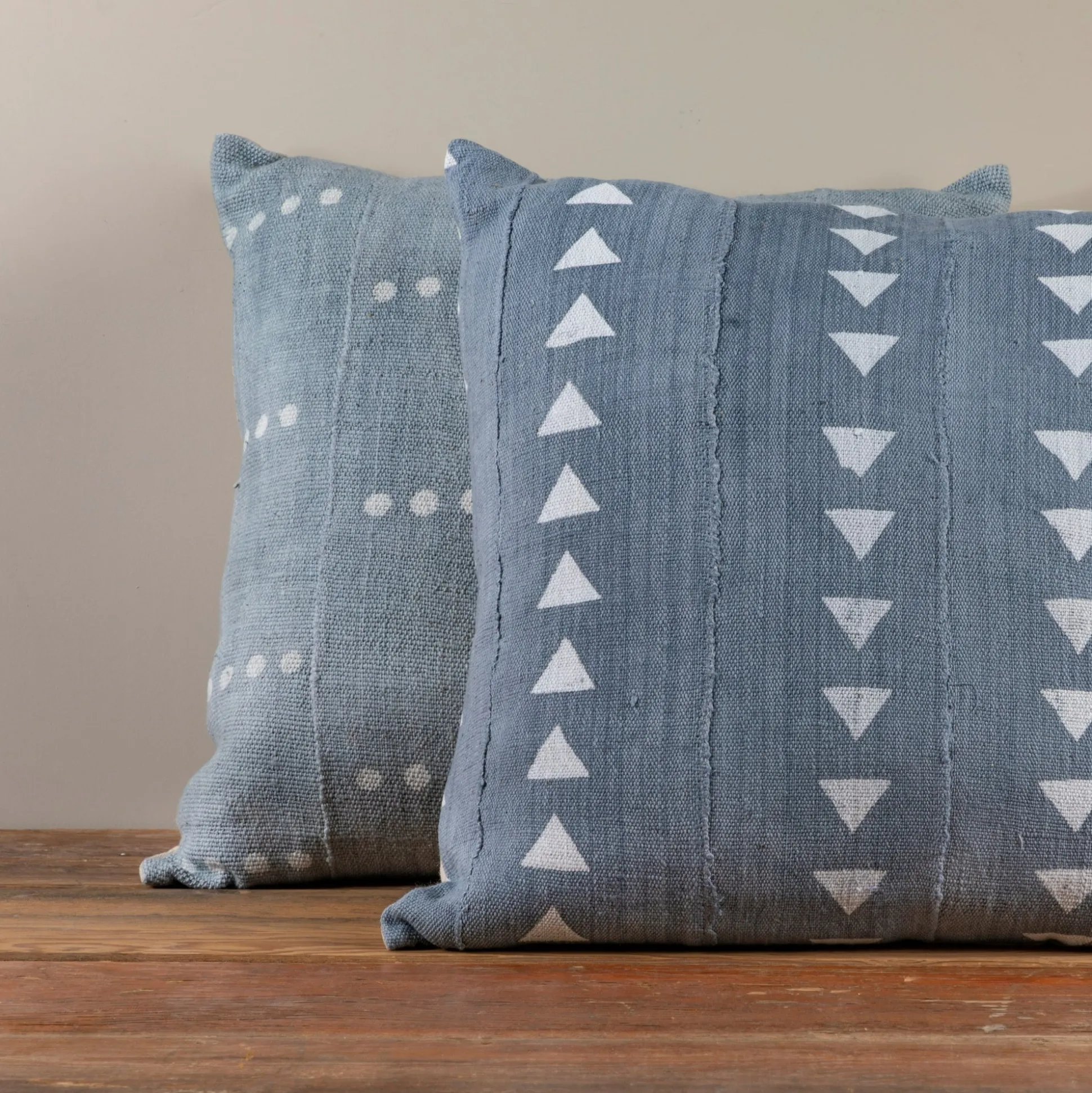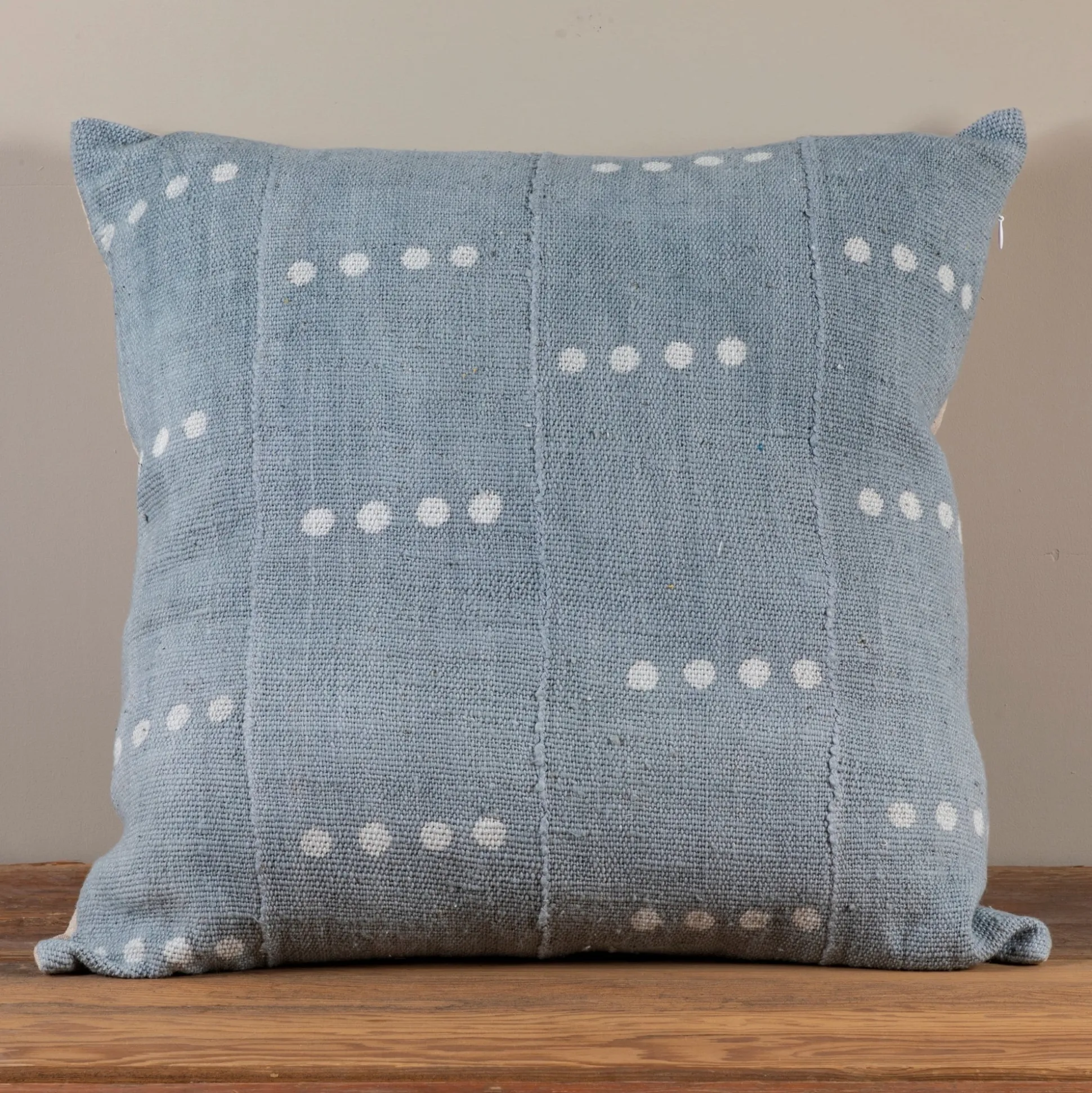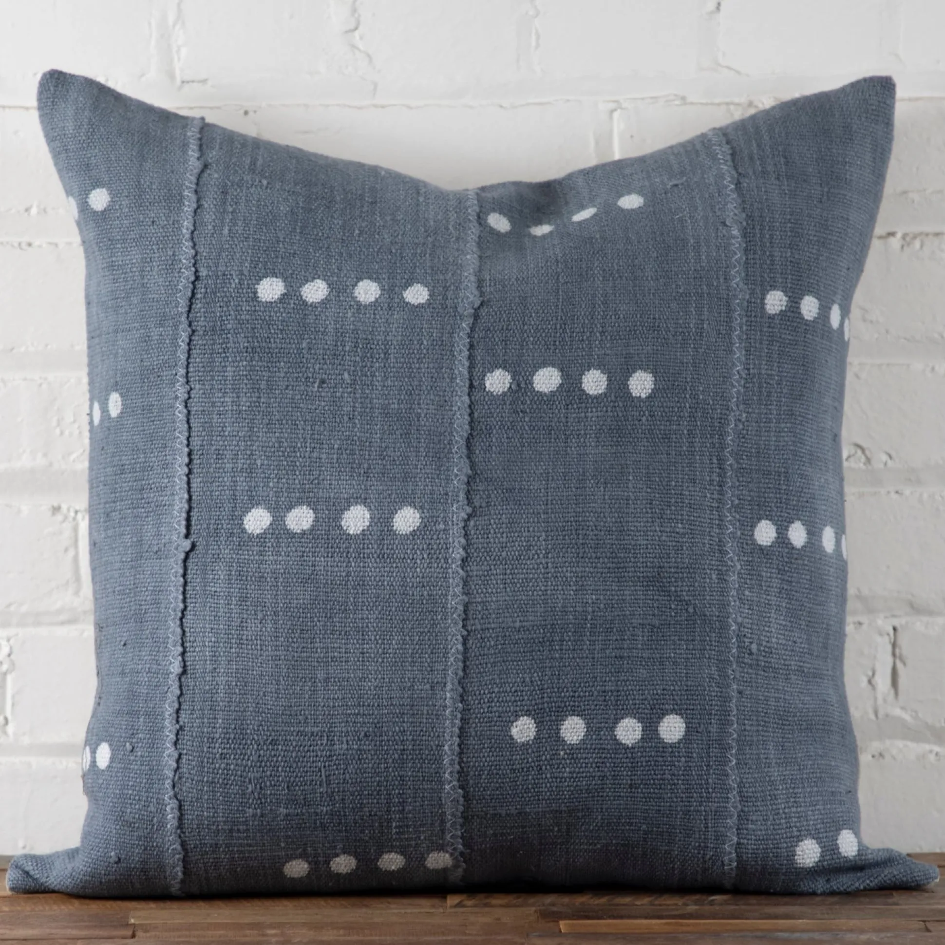 Mud Cloth Square Pillow, Blue / Grey with Dots^Be Home Sale