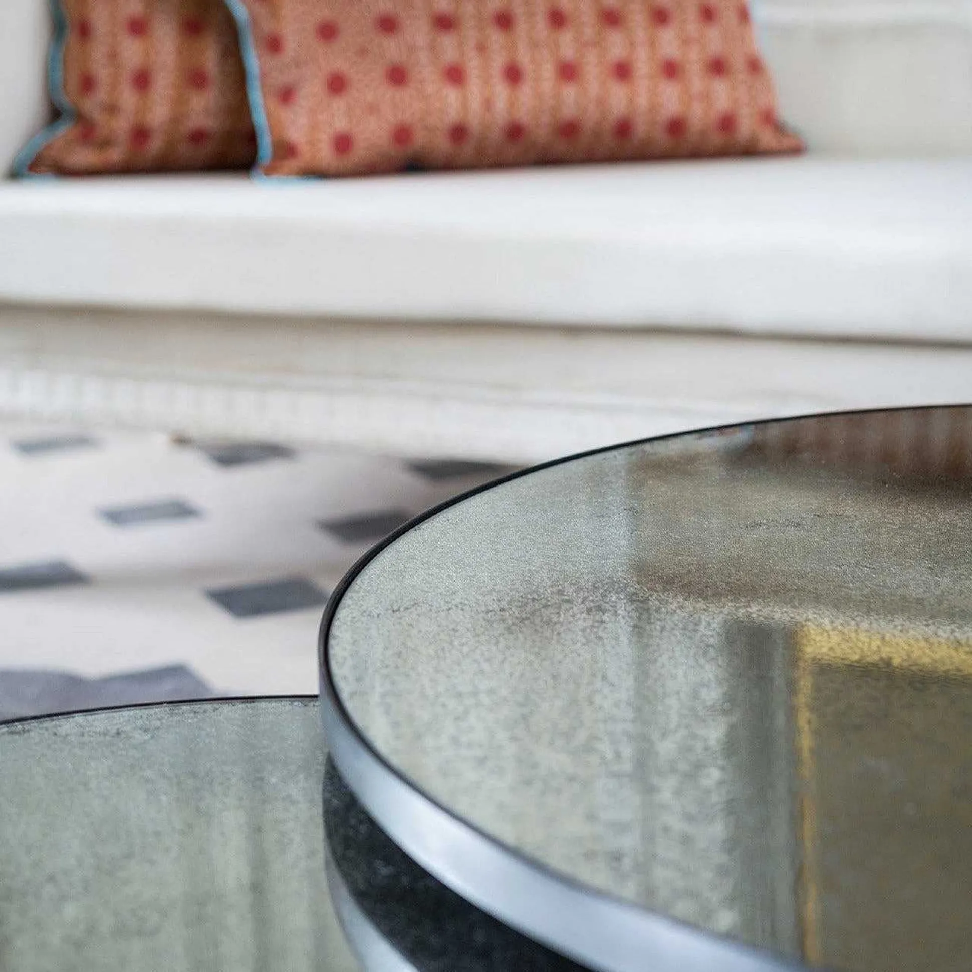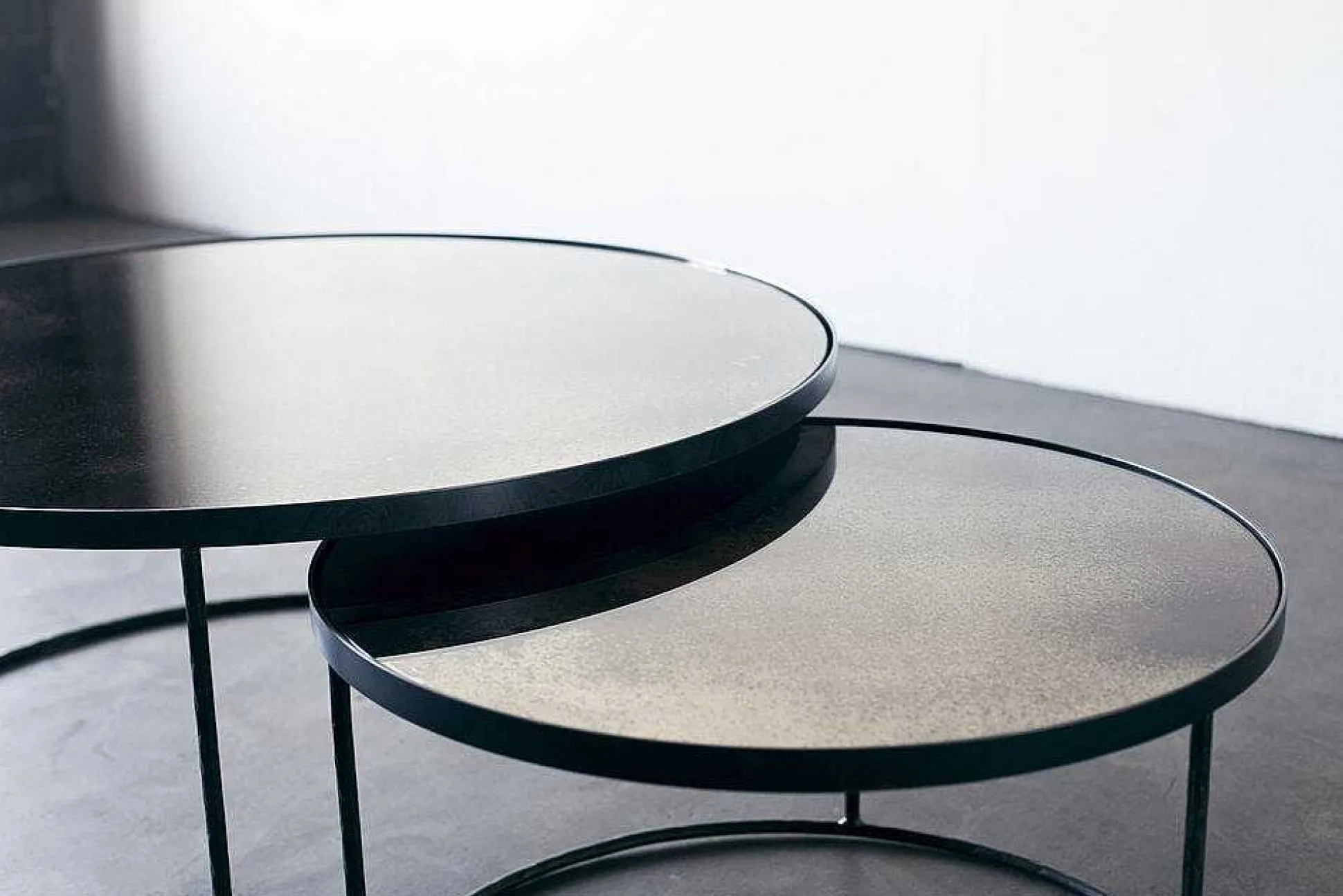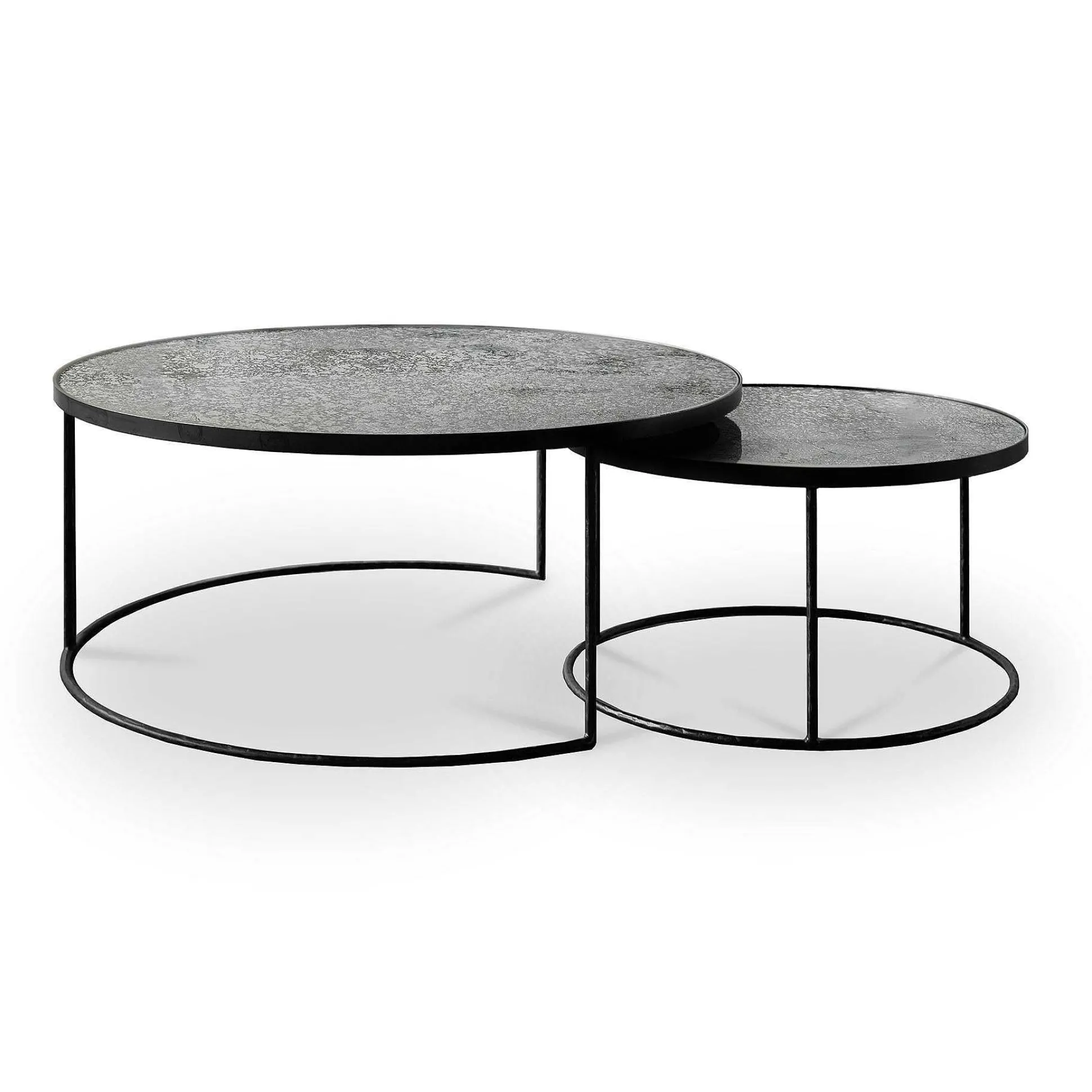 This nesting coffee table set captures the beauty of your environment on its reflective surface. The heavy aged mirrors ooze vintage vibes, while its metal frame brings you right back to modern times.