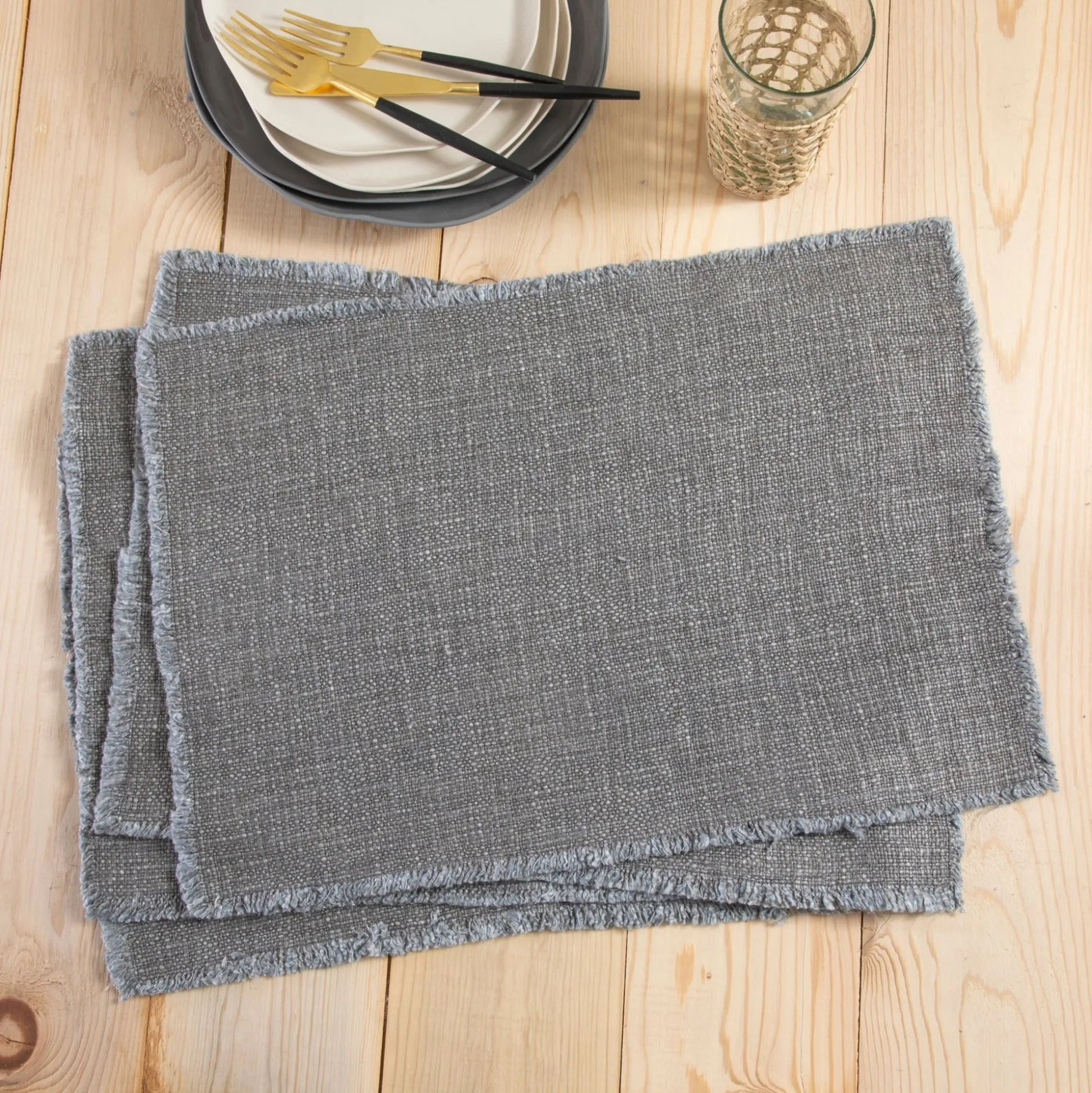 Beautiful soft, heavyweight weave texture and frayed edges all around.