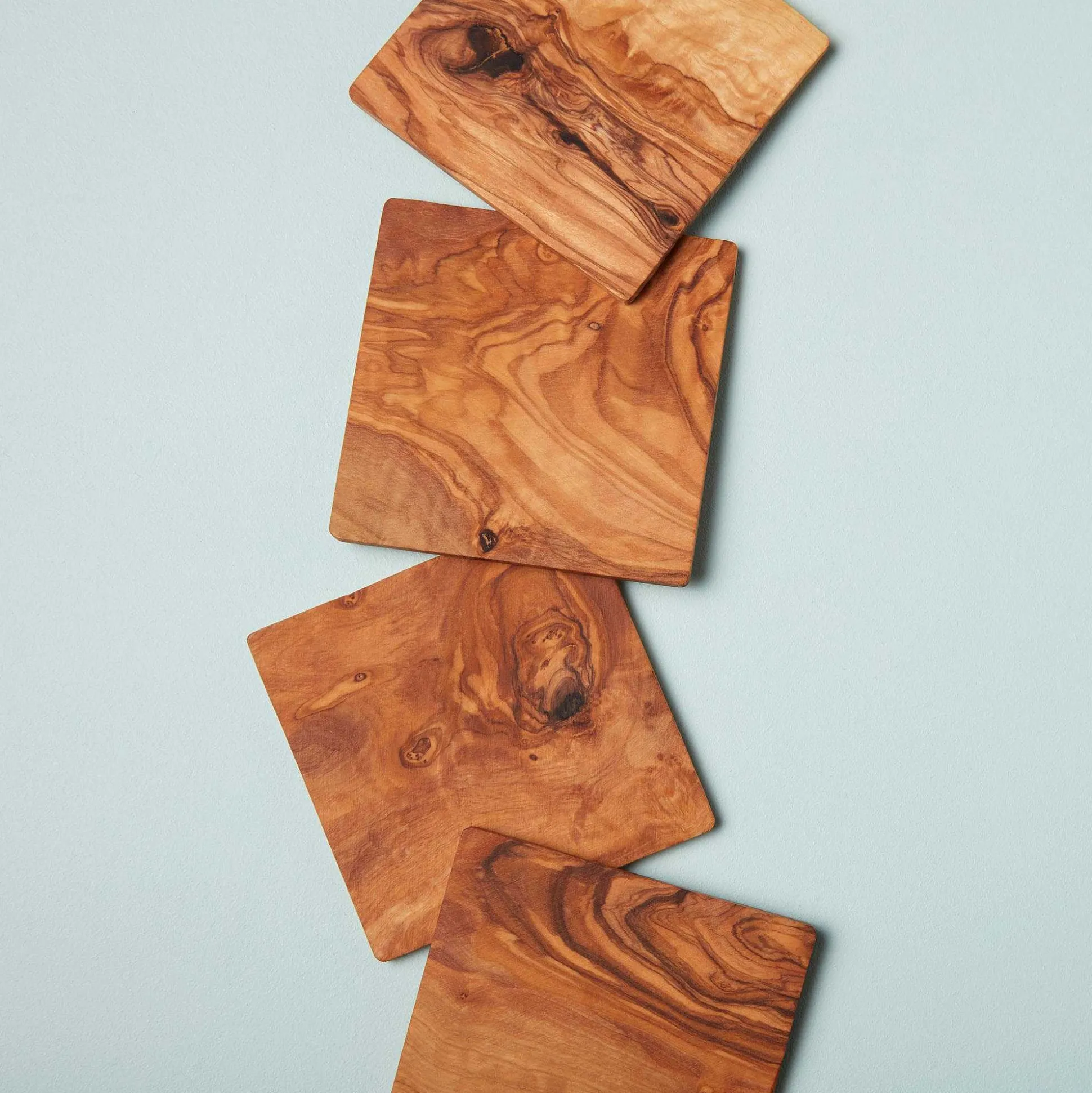 Protect your precious surfaces with this elegant Olive Wood Round Coaster Set. Turn up care-free as you and your guests place your glasses down on these stunning, square surface savers.