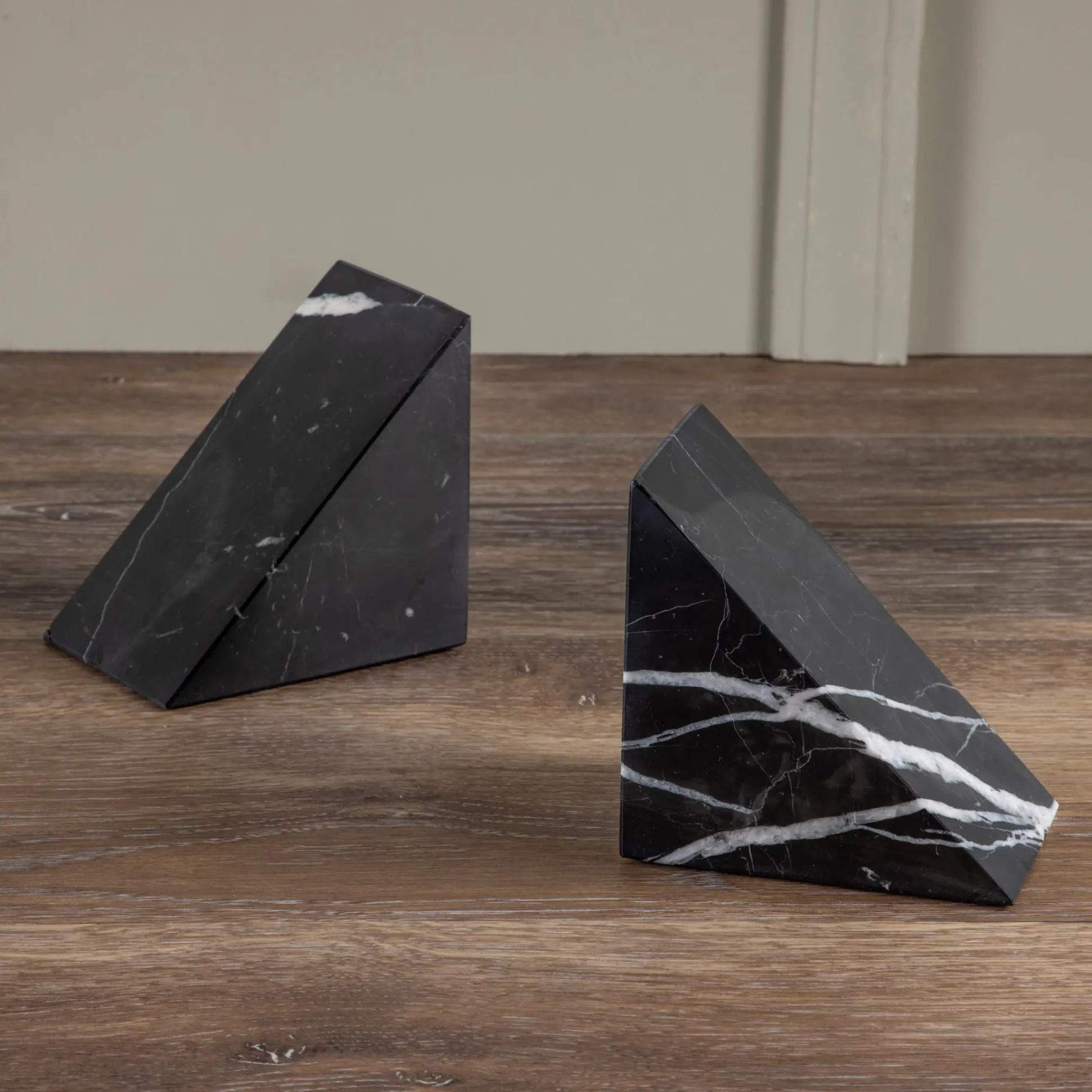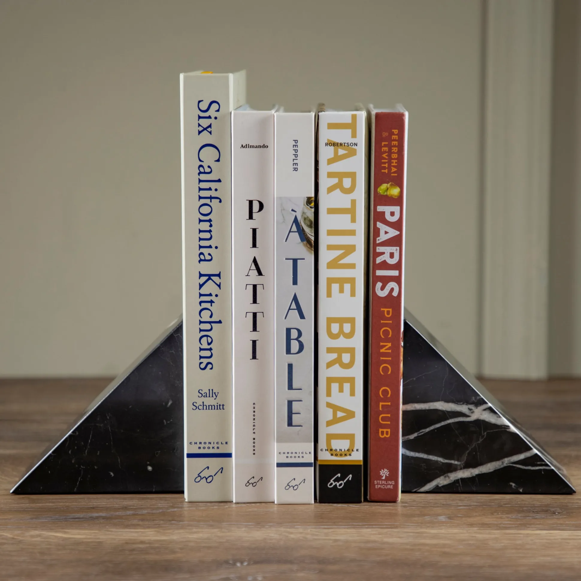The Pesa Marble Bookends are an upgrade for your bookshelf. The solid marble set keeps books upright in style. The understated, triangular shape with rounded corners beautifully showcases the marble material.
