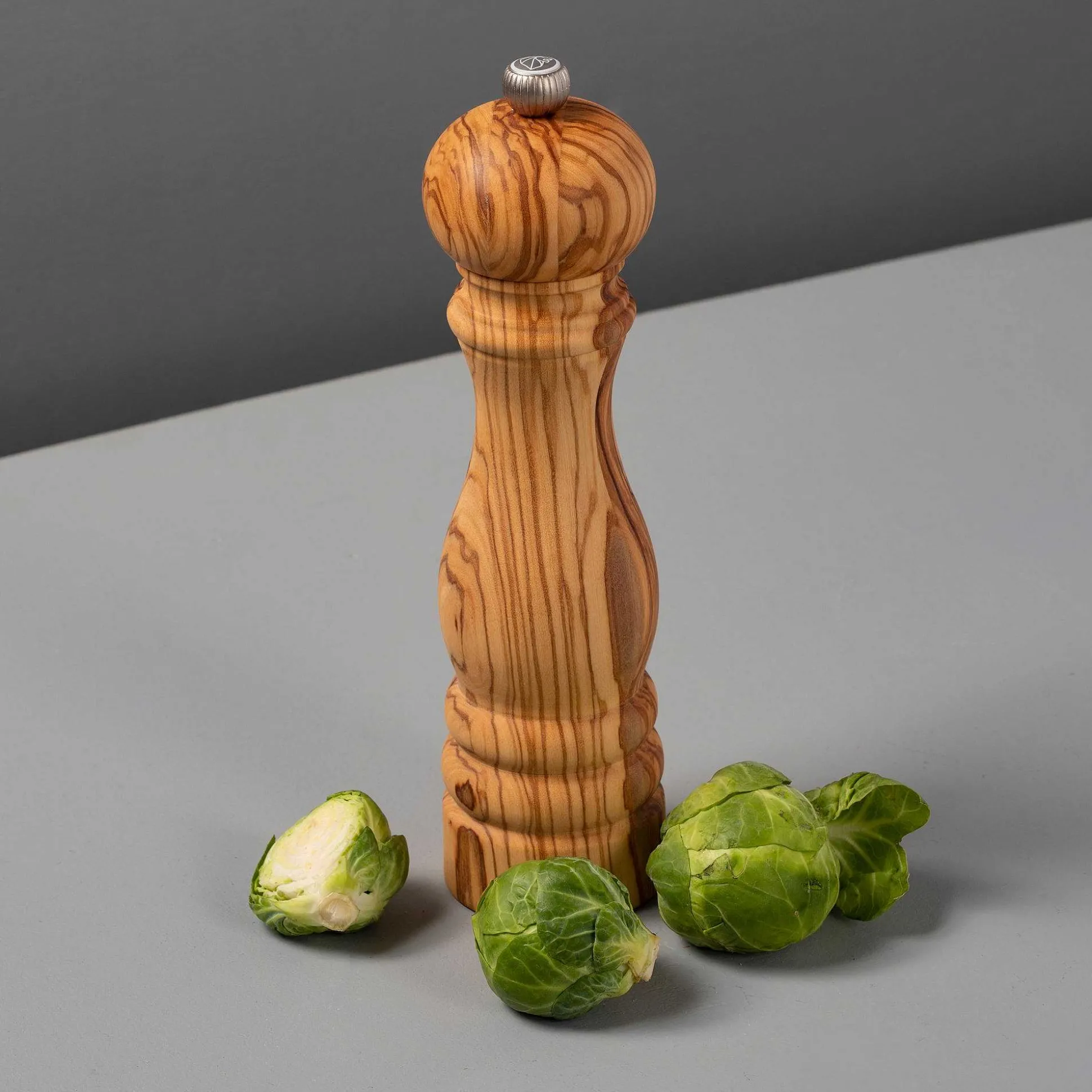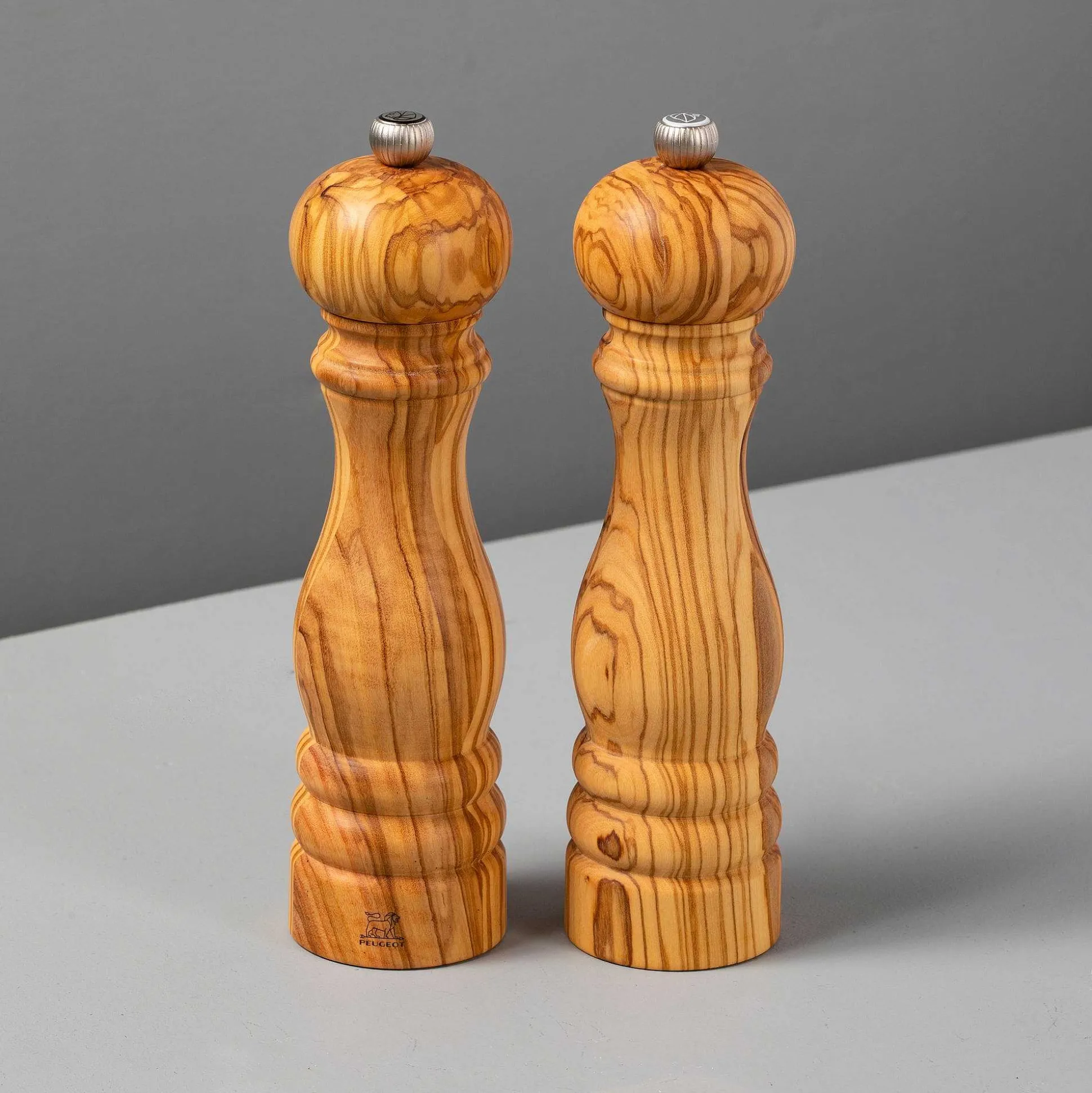 The body of this mill is made from olive wood, whose inimitable and naturally contrasting grain spontaneously gives Peugeot’s 22 cm Paris salt mill all its strength and personality. The body of this mill is made from olive wood, whose inimitable and naturally contrasting grain spontaneously gives Peugeot’s 22 cm Paris salt mill all its strength and personality.