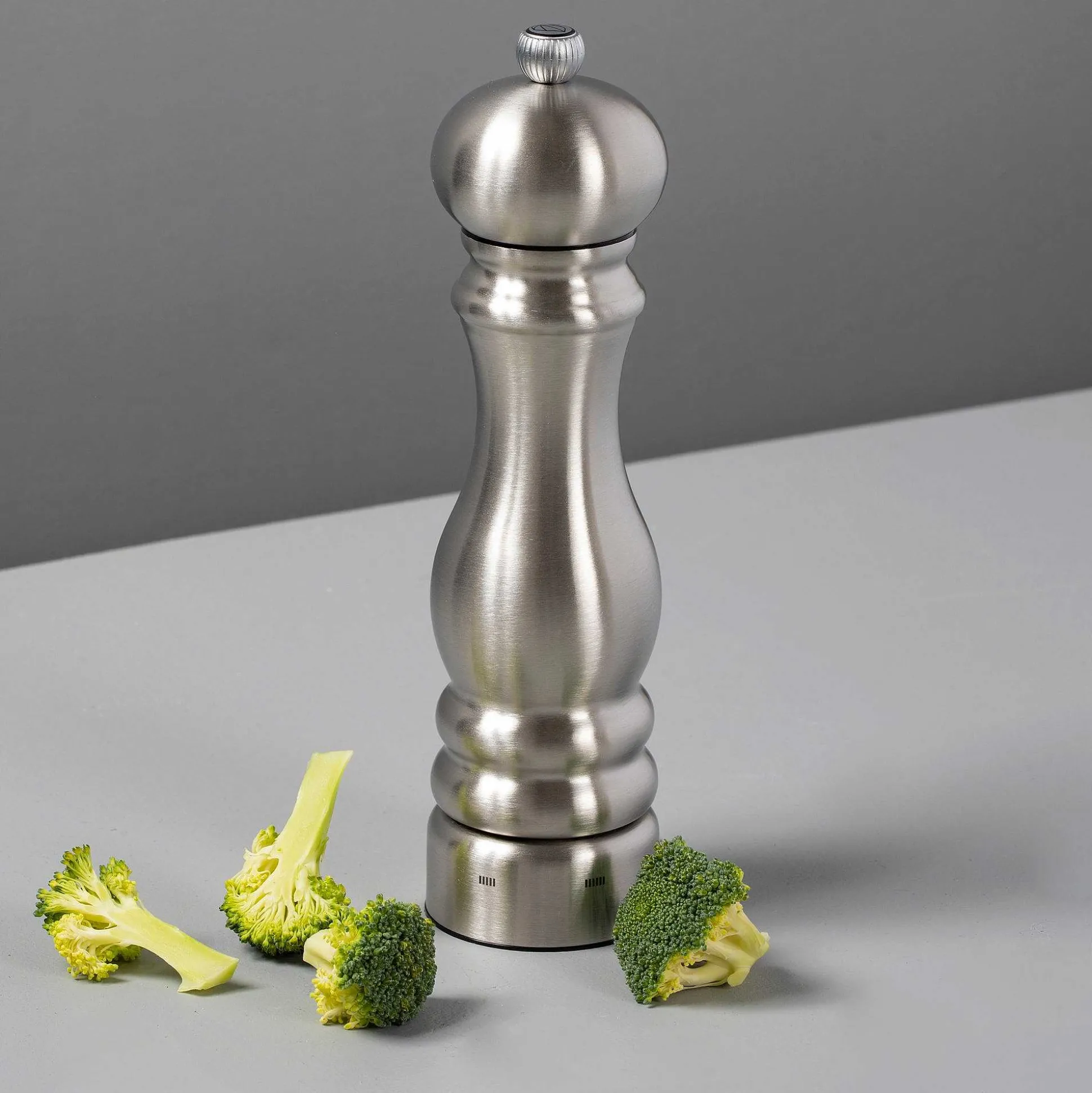 Pepper mill’s stainless-steel grinding mechanism is engineered to resist corrosion.