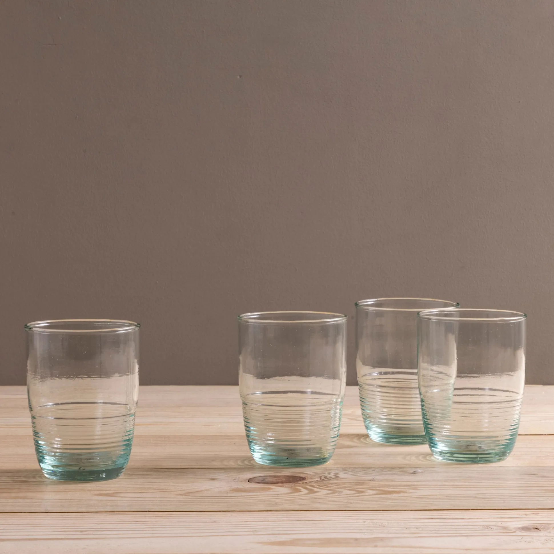 These elegant glass tumblers are a true classic, similar to our classic collection but with a bit of added texture. An ideal vessel for any beverage, these stylish and sturdy staples keep things casual and low-key when entertaining. Reach for these when you want to feel classy drinking water or whiskey—whichever you’re craving.