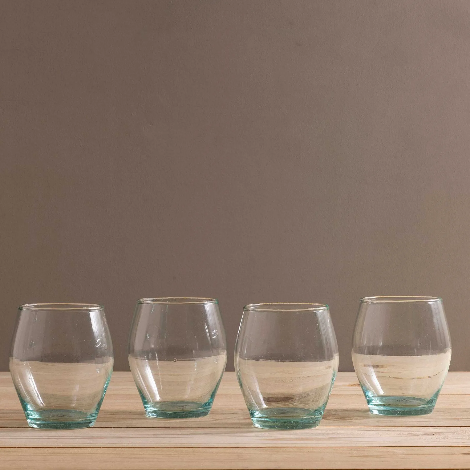 Sip happens… Lift your spirits with our stemless recycled tulip glasses, a universal style of glass for beverages of all sorts from wine to beer, to water or lemonade. Handcrafted from 100% recycled soda bottles, enjoy a one-of-a-kind beverage knowing no two drinks will ever be the same.