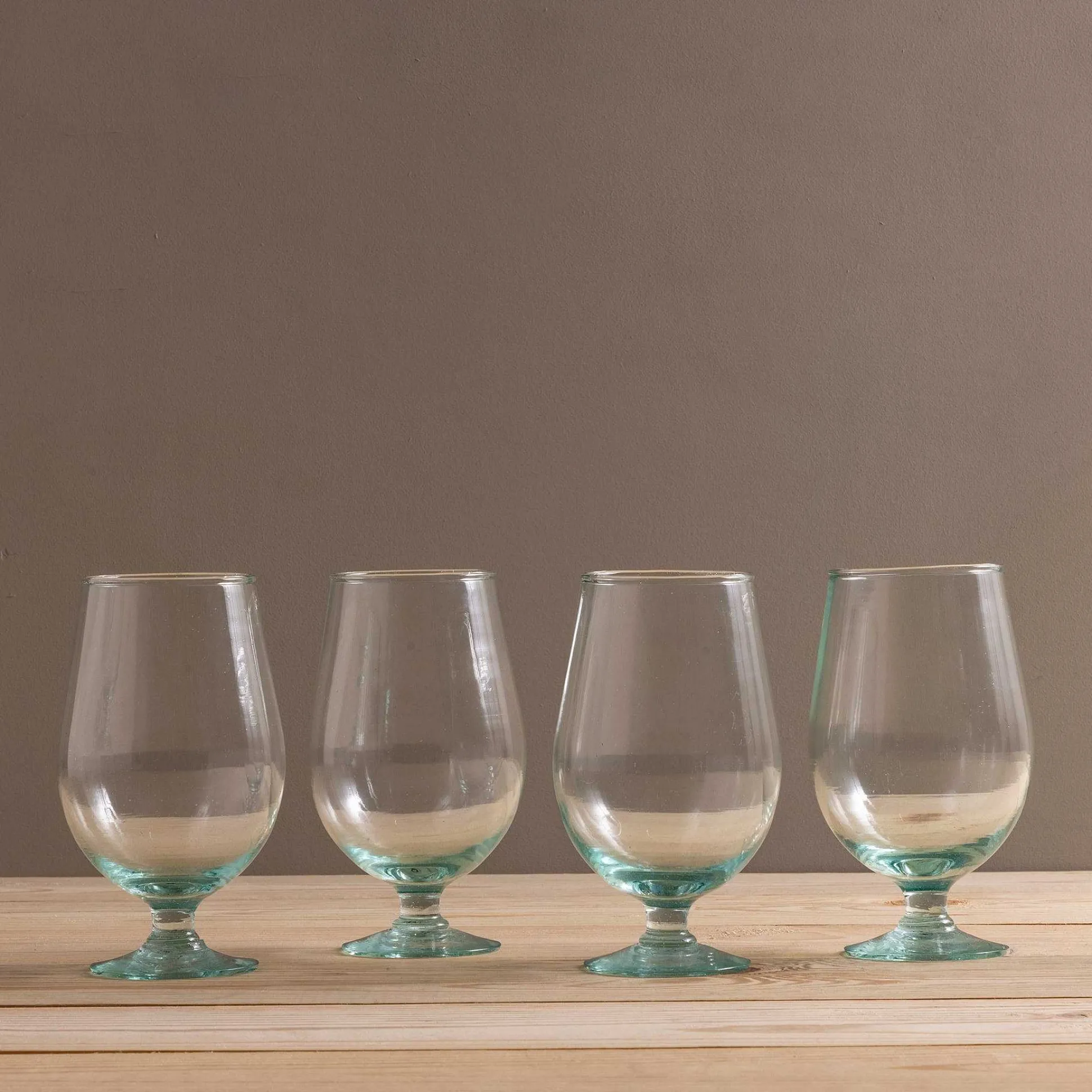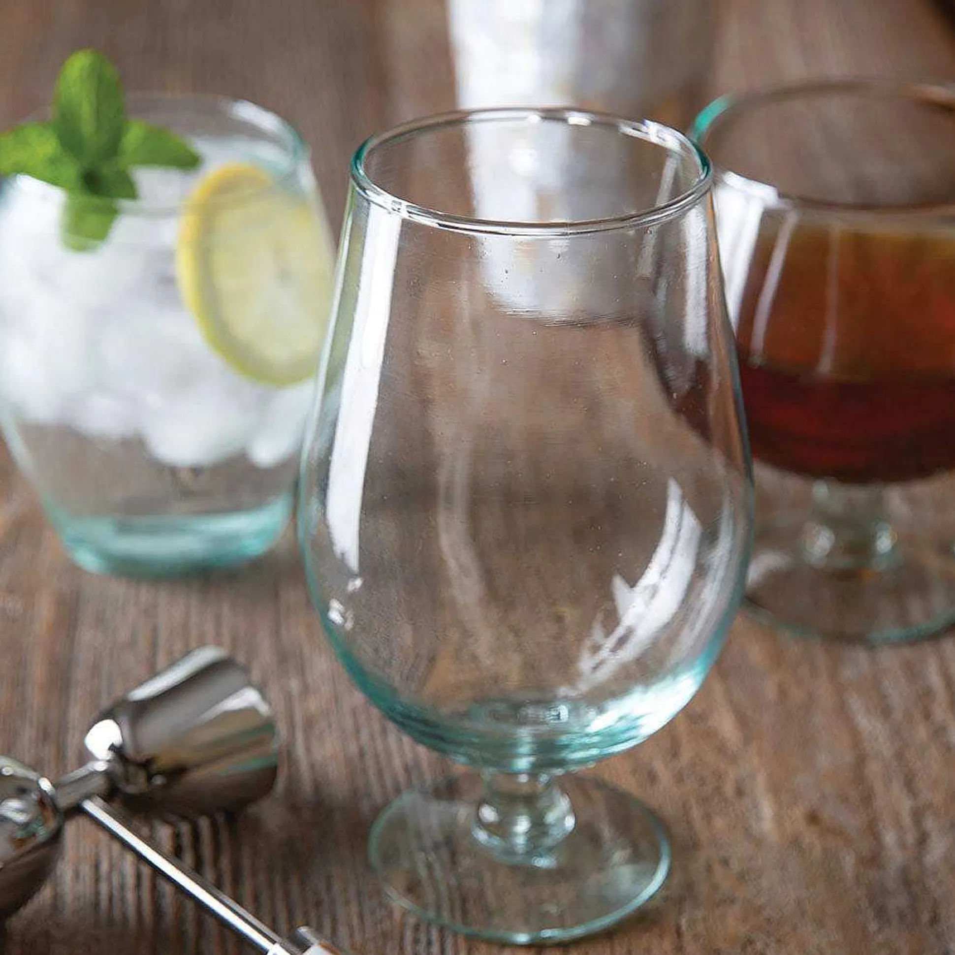 This neutral tulip style glassware adds a bit of sparkle to even the most mundane of beverages. Handcrafted from 100% recycled glass, enjoy a truly one-of-a-kind cocktail knowing no two glasses will ever be the same.