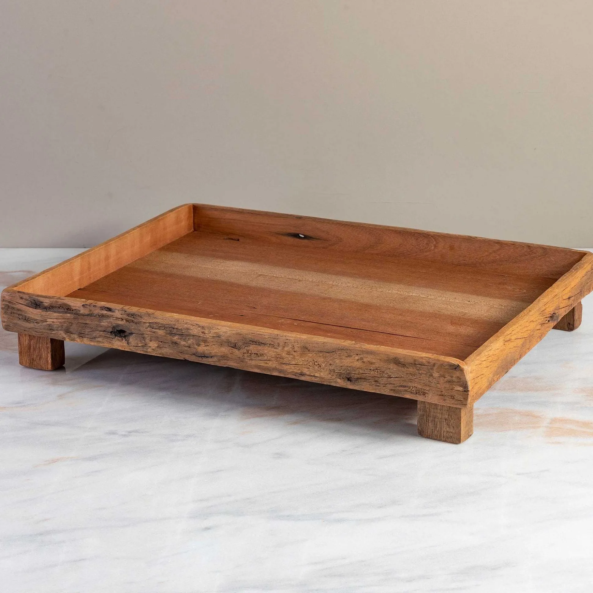 Transport your best meals around the house in style with our Large Reclaimed Wood Footed Tray. Whether you’re having a cozy breakfast-in-bed kind of morning or serving guests at your next gathering, this rustic piece will always deliver.