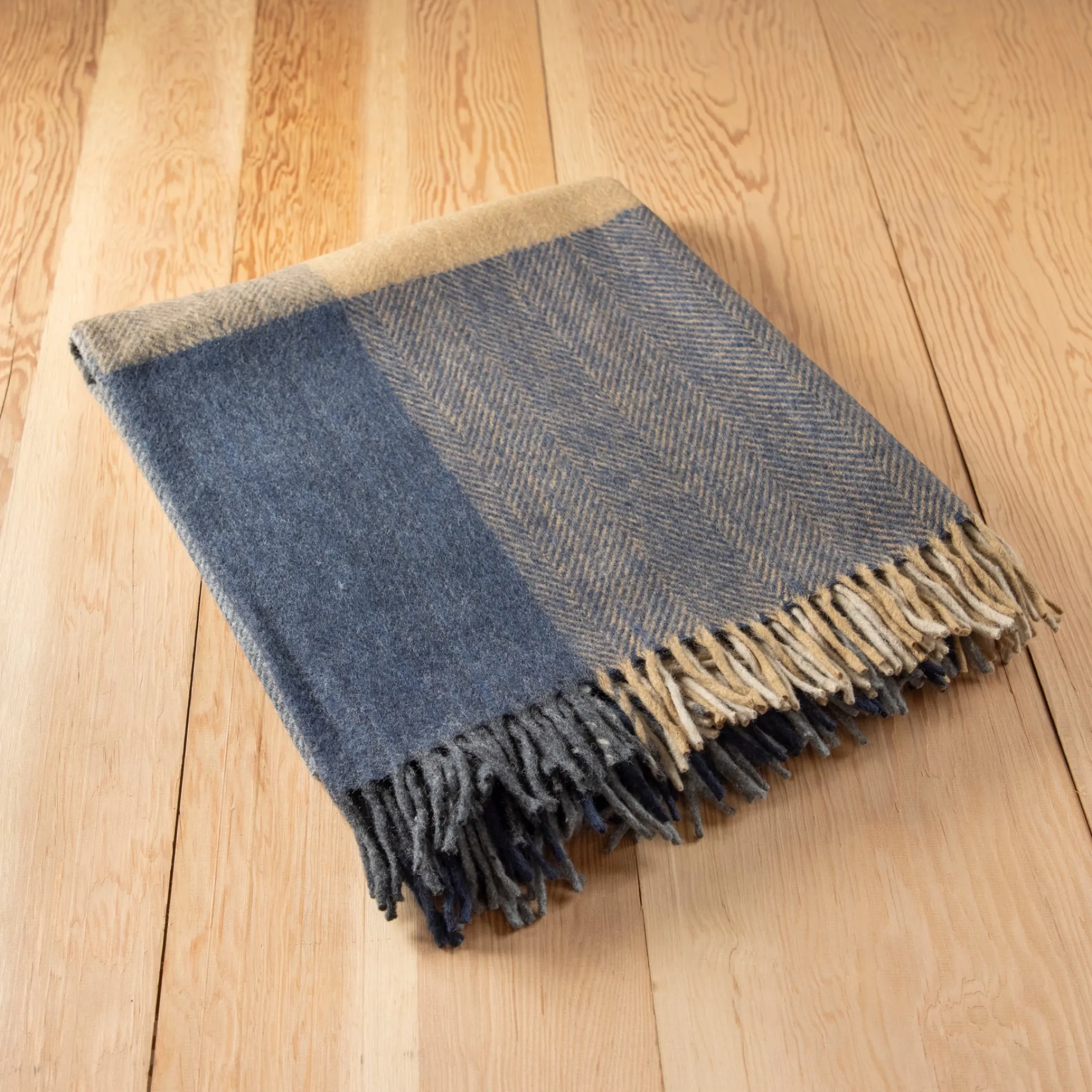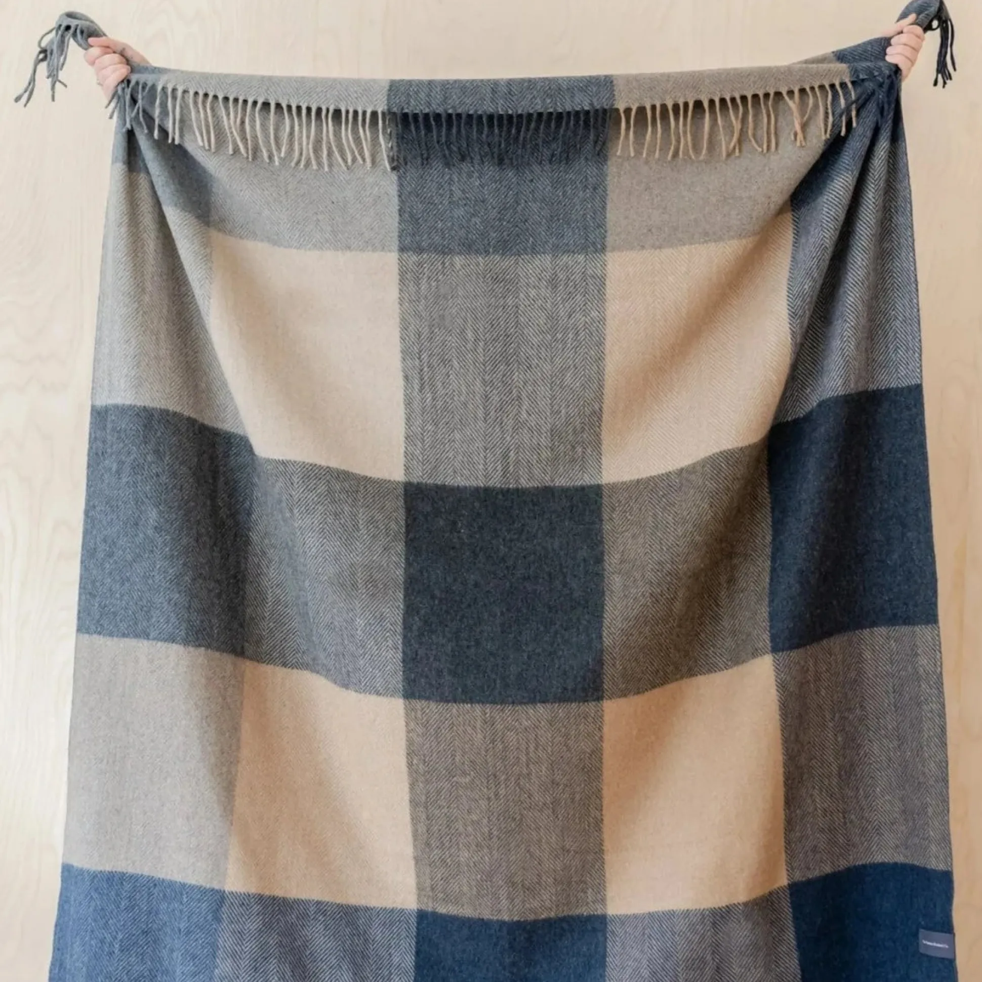 Recycled Wool Blanket in Stone Herringbone Block Check^Be Home Best Sale