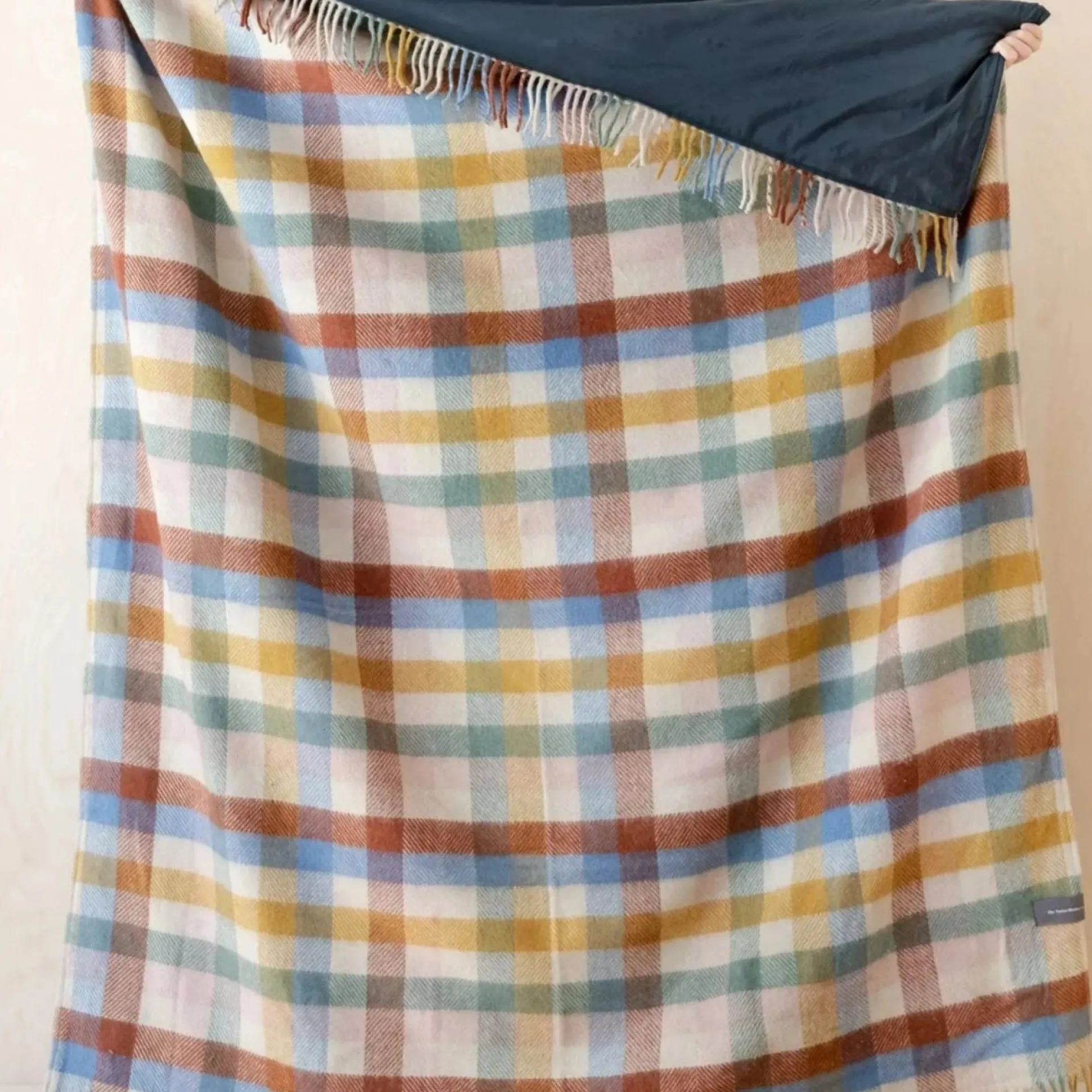 Recycled Wool Waterproof Picnic Blanket in Rainbow Check^Be Home New