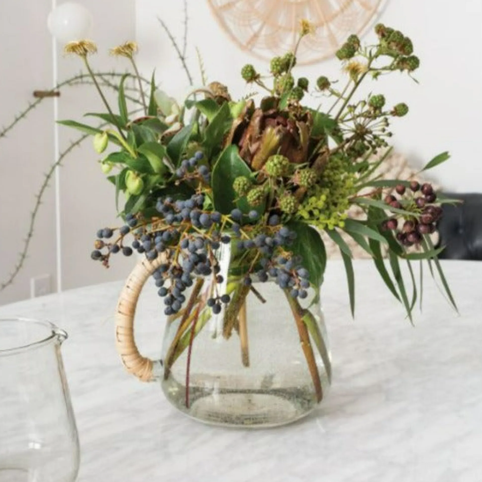 - Material: Glass & Cane