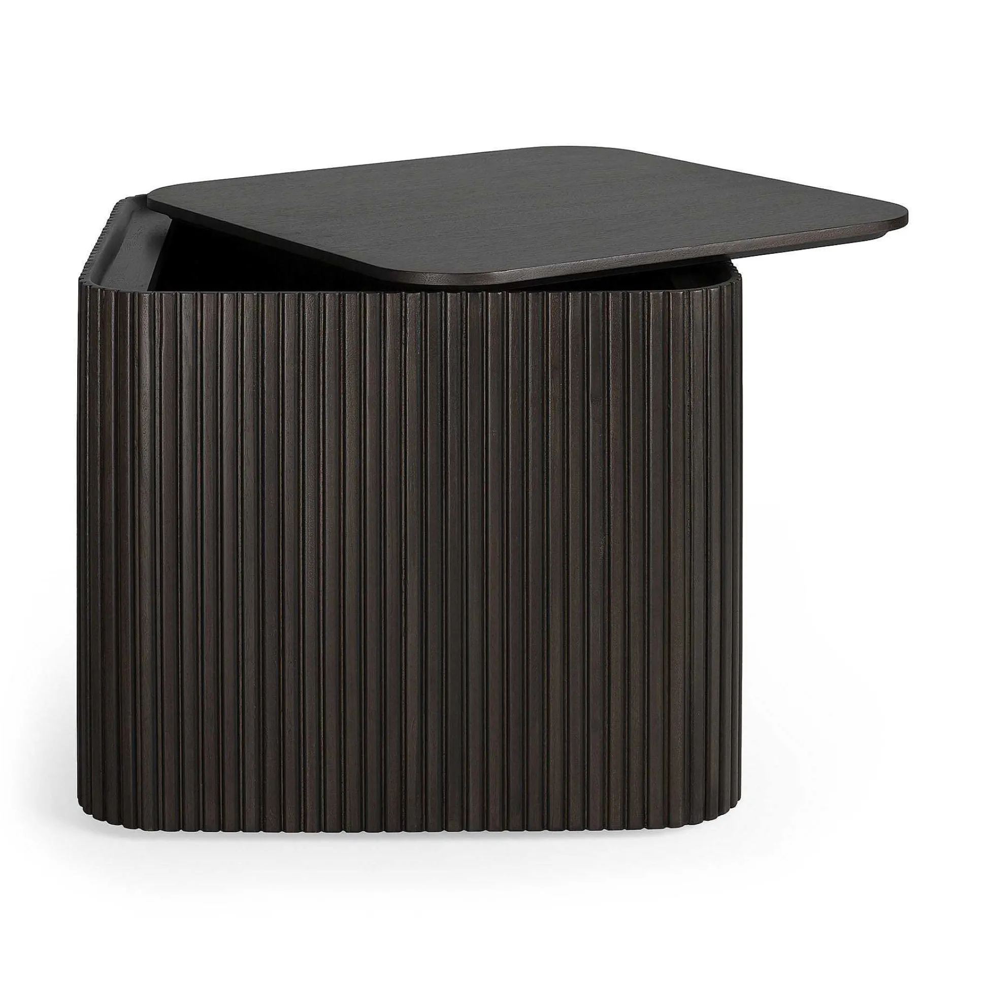 The Roller Max is a clever multifunctional item that combines a side table with storage. Encapsulated in its stacked wood-stick effect, the tabletop can be easily removed to hide toys, cushions, and throws from daily life. The perfect solution for smaller living.