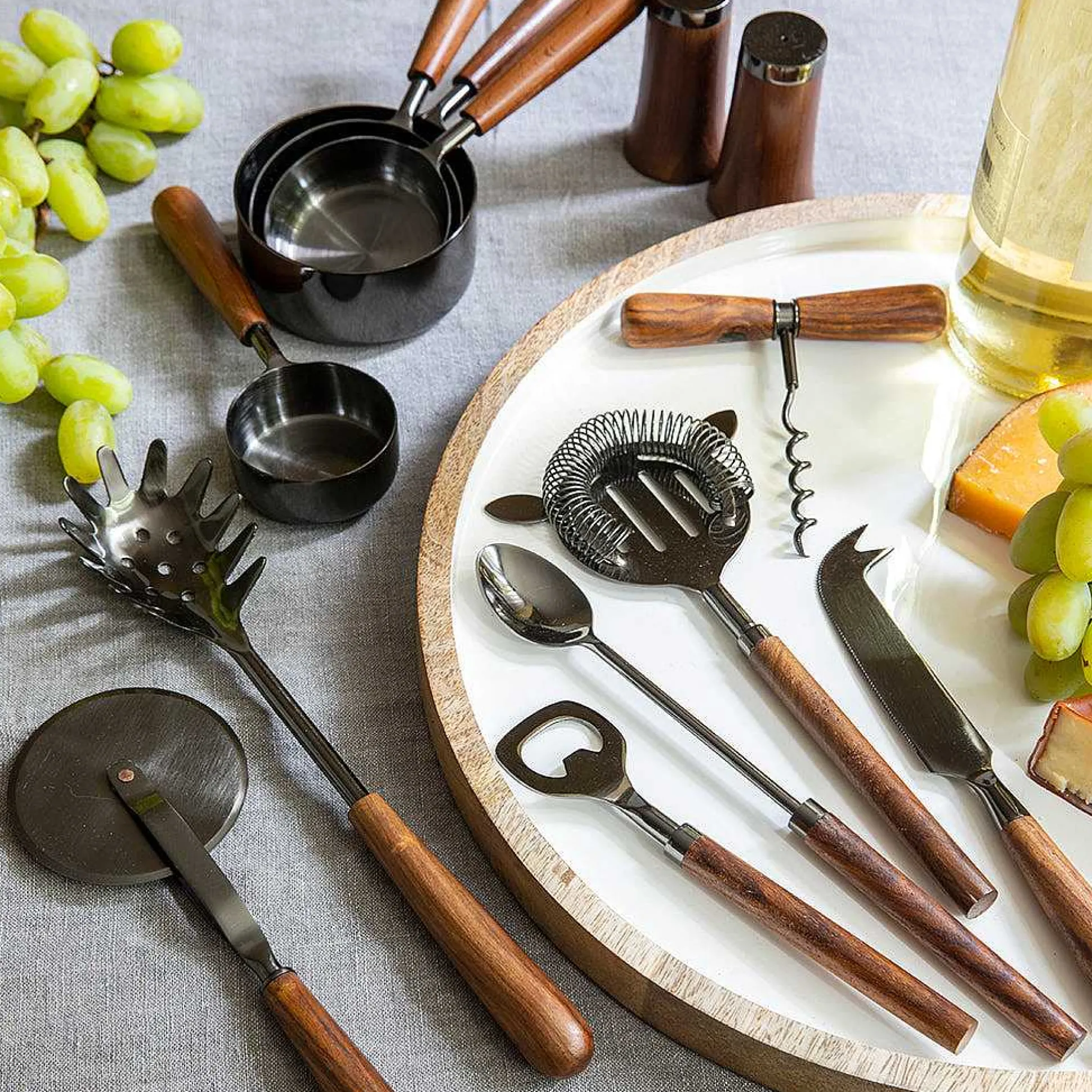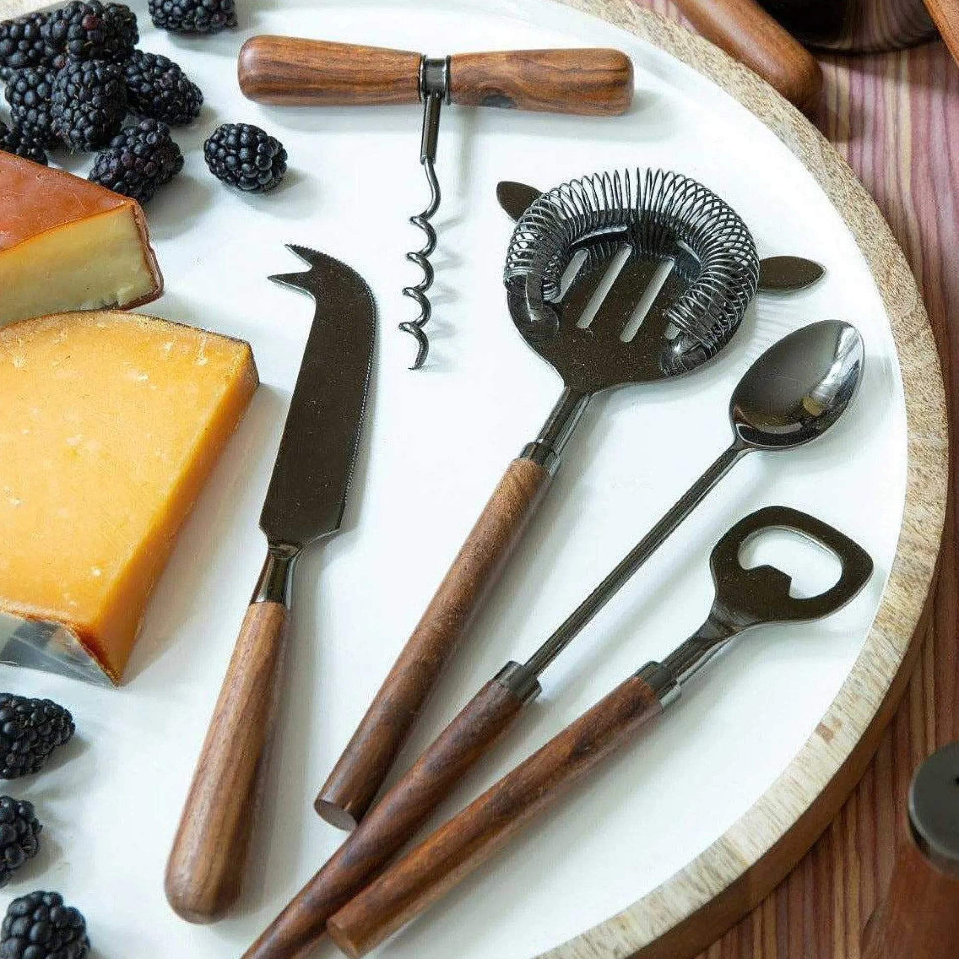 Call us old fashioned, but no home bar is complete without a set of snazzy bar tools.The Rosier Bar Set of 3 has all your mixology needs covered with function and flair, including a strainer, bottle opener, and mixing spoon. Pair with other Rosier products for a sleek, two-toned collection.