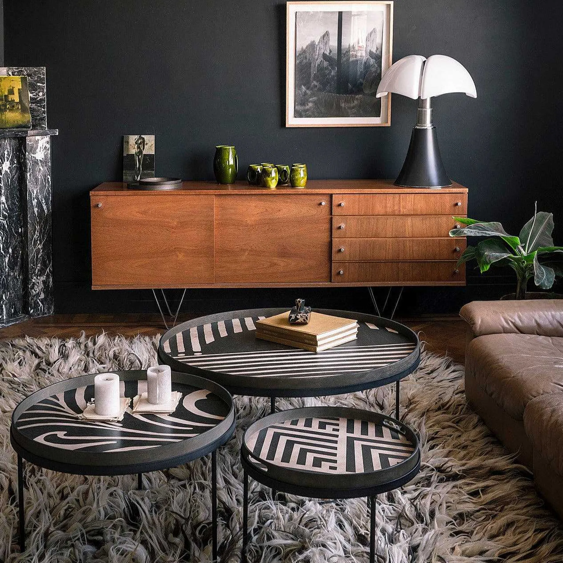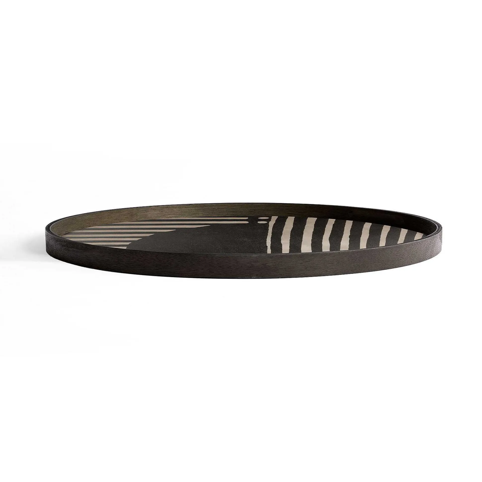 The Urban Geometry collection of trays is inspired by the Art Deco architecture and geometric patterns. Although streamlined with a monochromatic palette for the majority of the designs, you will find a burst of paprika, pumpkin, saffron and a dash of steel blue to balance out the collection. Add this wooden serving tray to any environment to add touches of color and interest throughout the space.