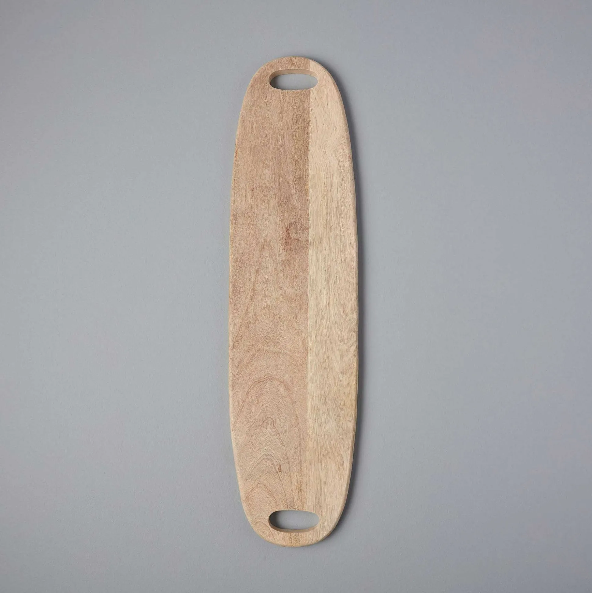 Our Raw Mango Wood Long Oval Board is sustainably sourced from protected groves and carved by hand from a single piece of wood. We are proud to work only with sustainably sourced timber, supporting the planting of new trees with each harvest.The beautifully aged wood infuses each piece with its own set of natural striations and subtle highlights.