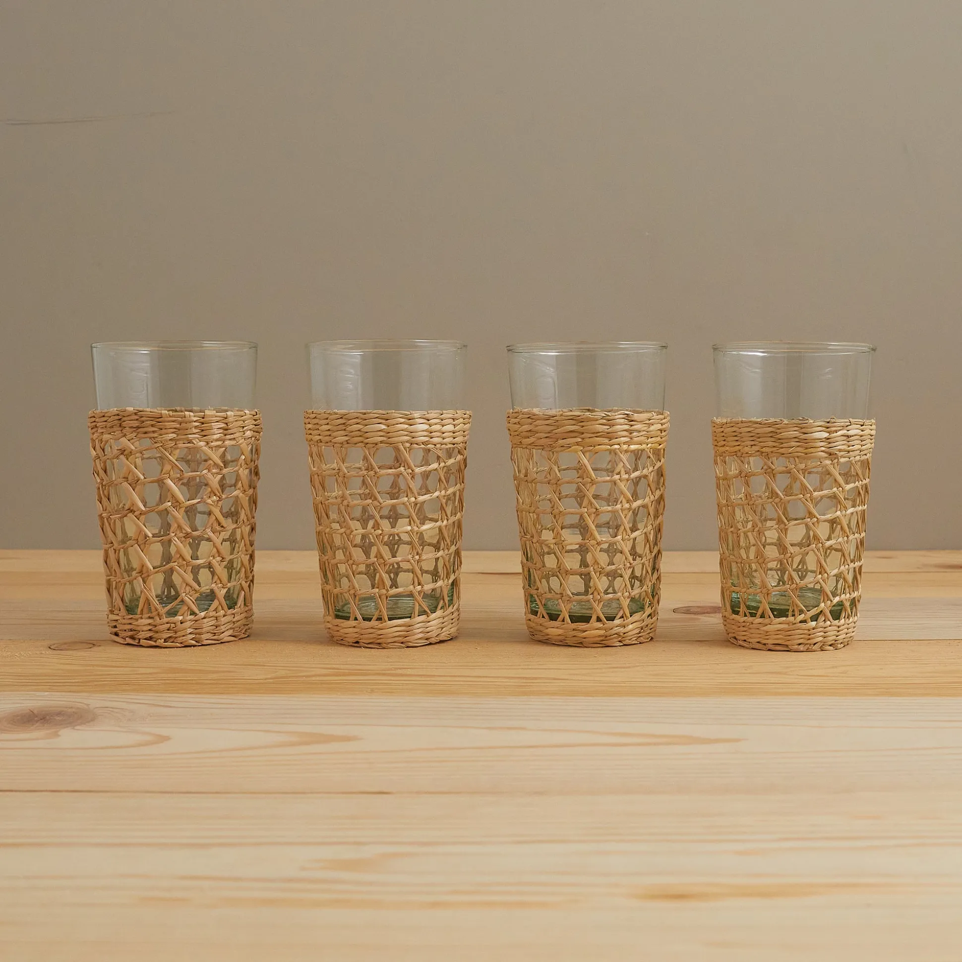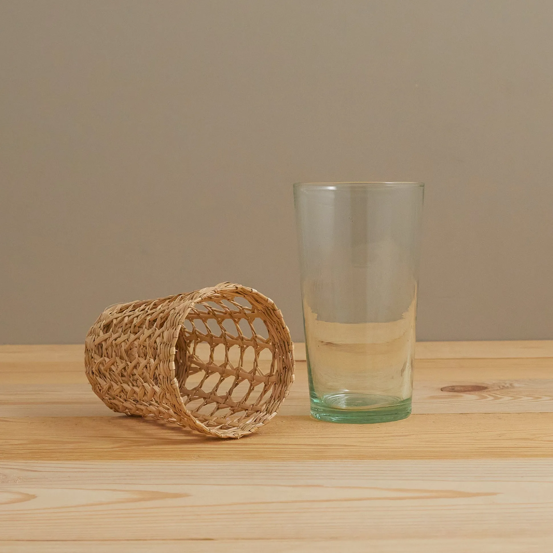 Seagrass meets glassware in this collection, which is an update on an old favorite. Natural wraps on pitchers and matching glassware make festive pieces for indoor and outdoor drinking and dining. Highball glass, perfect size for cocktails, lemonade or other refreshing beverages over ice.