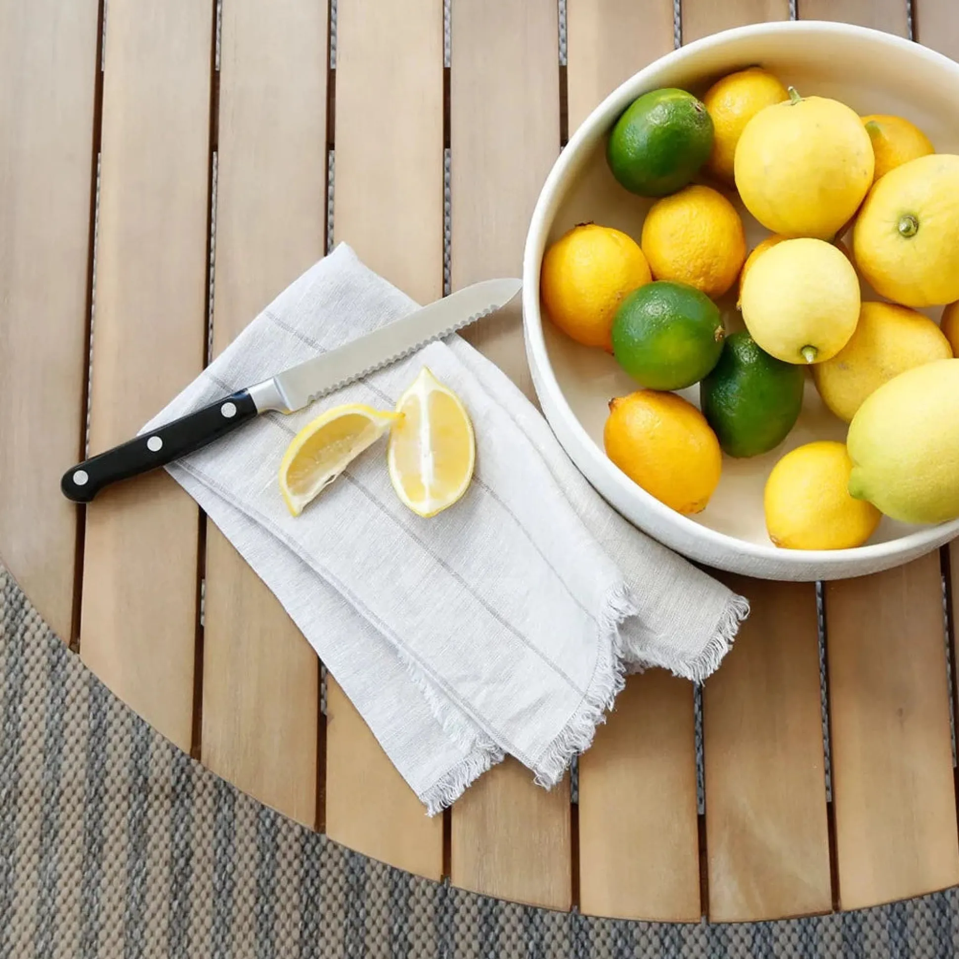 The Sonoma napkins have a fringe edge and a threaded stripe for contrast.