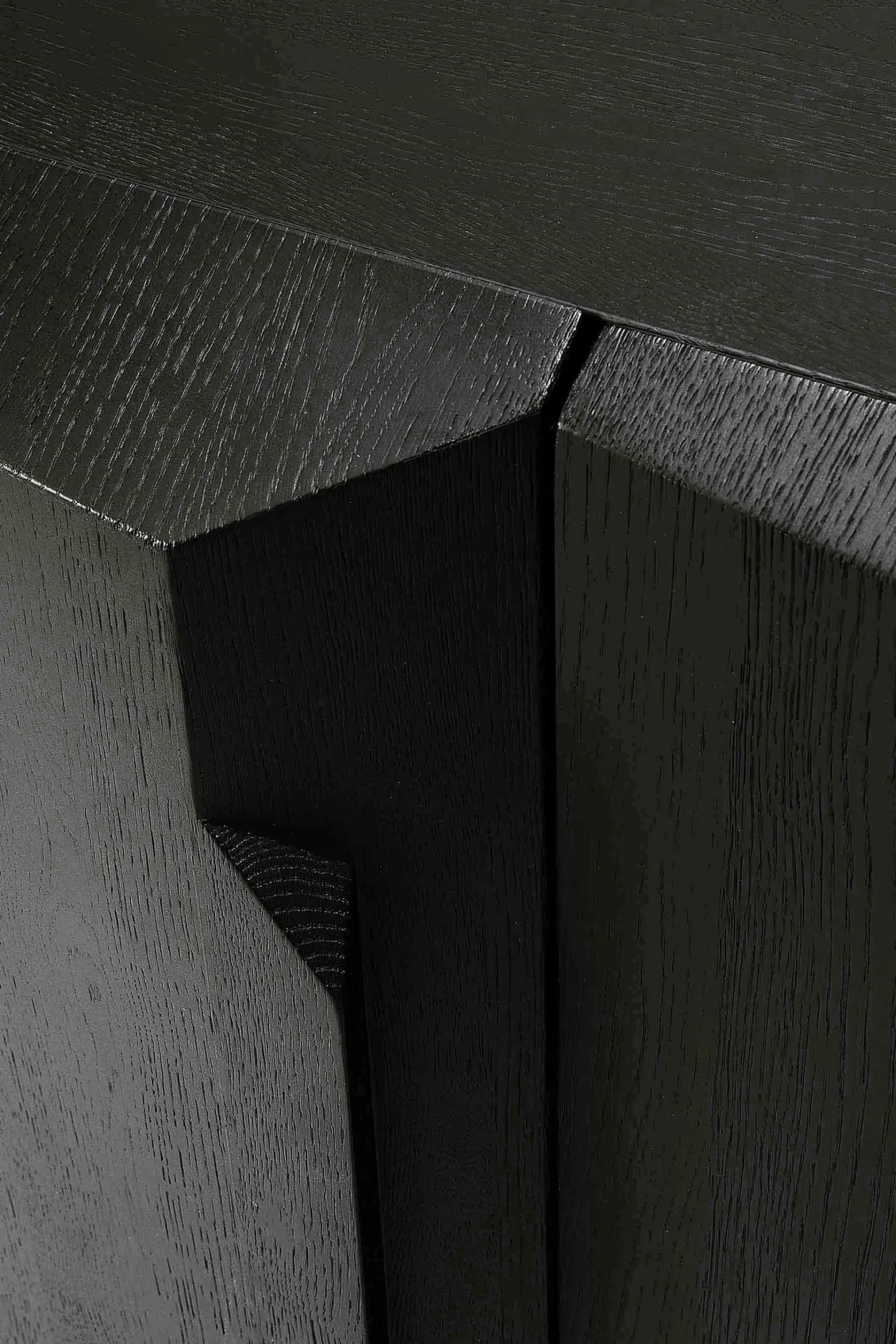 An angular composition forms the heart of a design that aims to distance itself from traditional static and immobile surfaces. A unique sense of volume is created which alters your perception of the sideboard as you walk by.