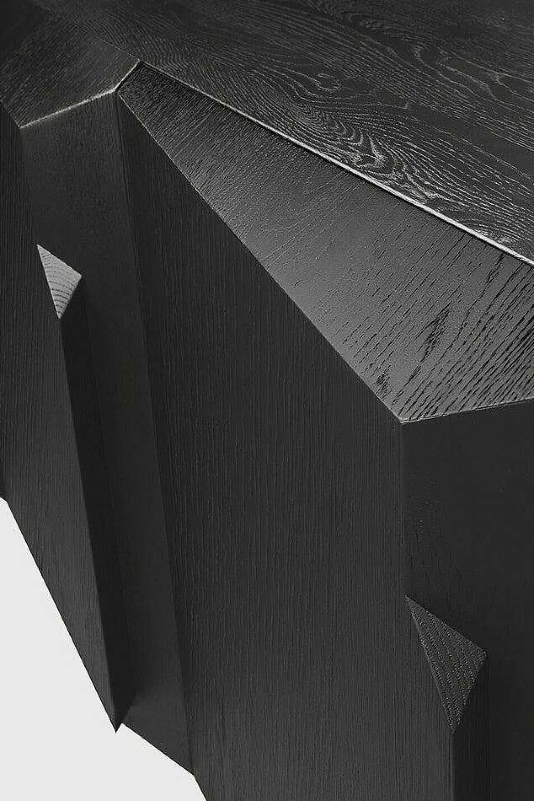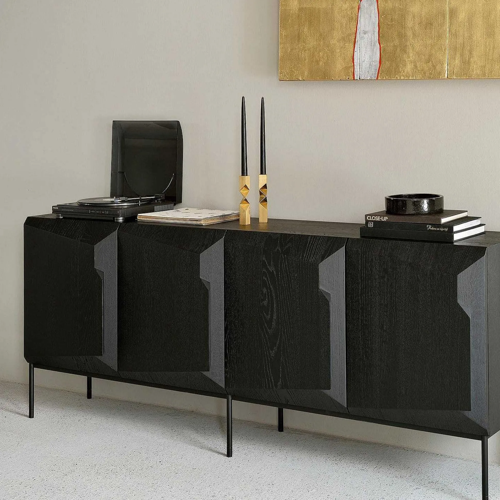 An angular composition forms the heart of a design that aims to distance itself from traditional static and immobile surfaces. A unique sense of volume is created which alters your perception of the sideboard as you walk by.