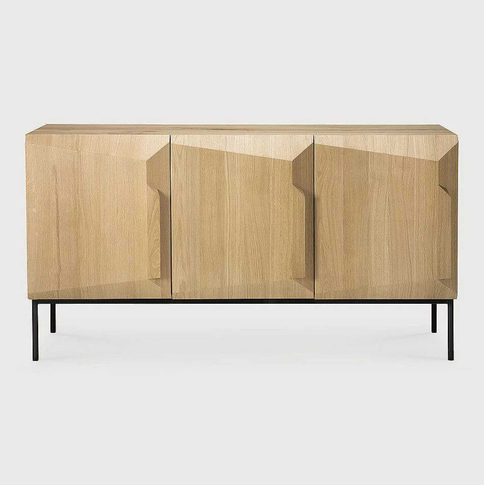 An angular composition forms the heart of a design that aims to distance itself from traditional static and immobile surfaces. A unique sense of volume is created which alters your perception of the sideboard as you walk by.