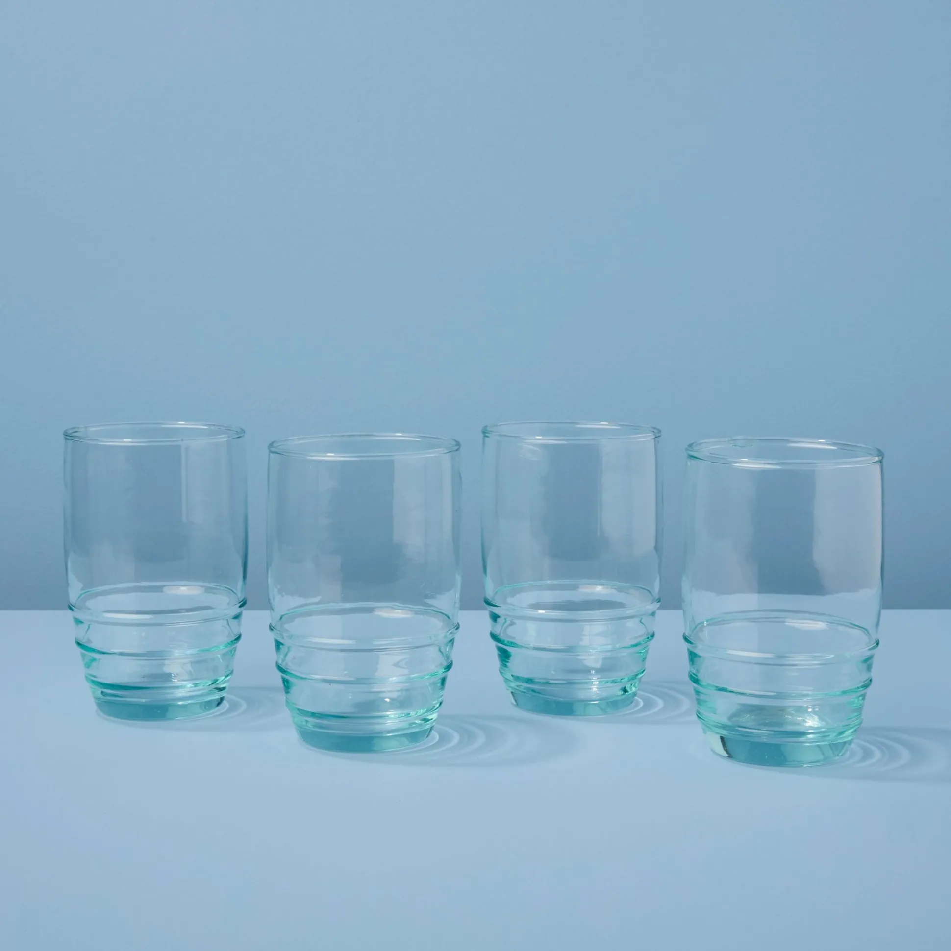 Bundle Includes: Premium Recycled Glass Rings Tumbler, Tall, Set of 4, Premium Rings Recycled Glass Pitcher, Olive Wood Honey Dip