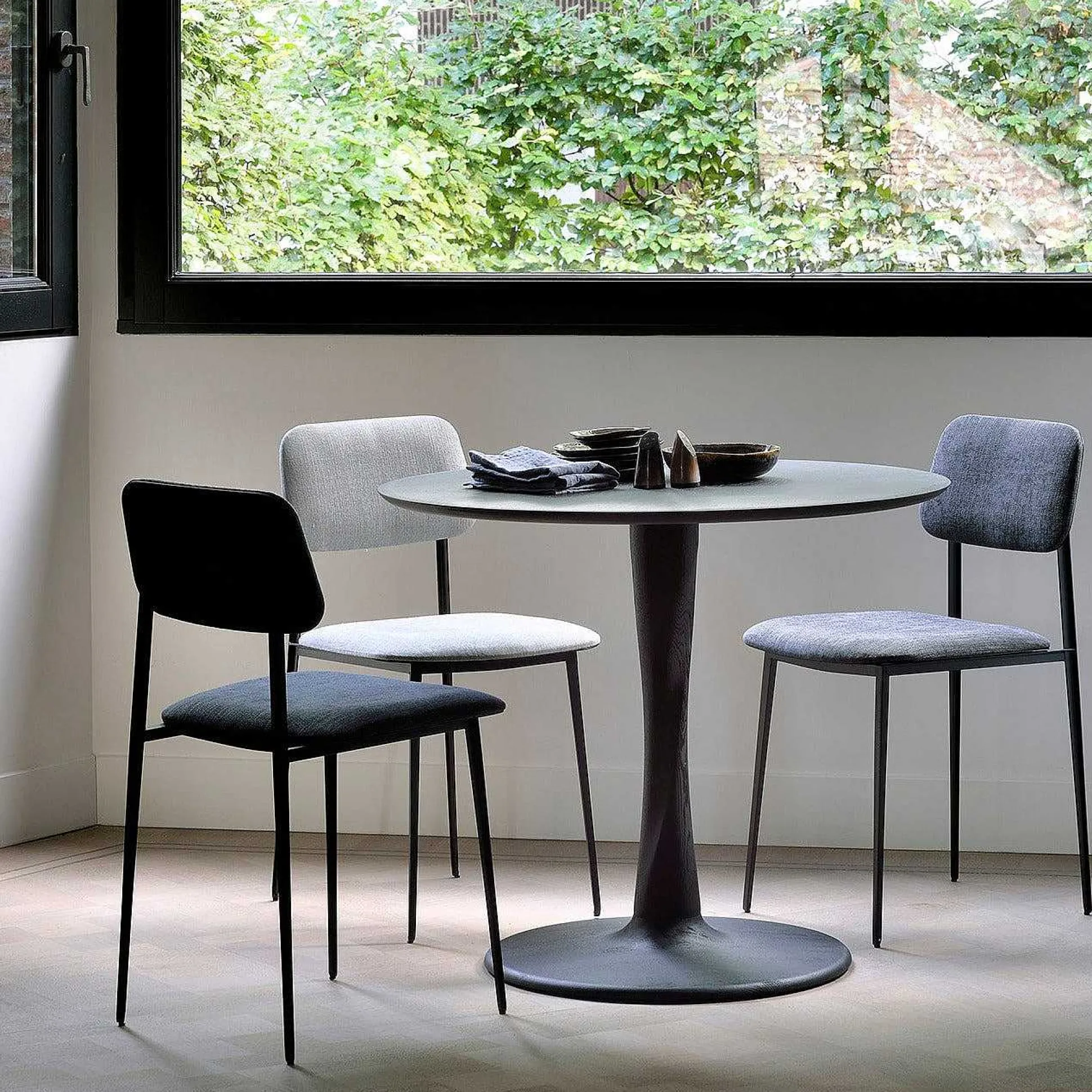 Airy with subtle complexities, the Torsion dining table incorporates advanced woodworking techniques to create a light table top with a torsade base of sculptural elegance.
