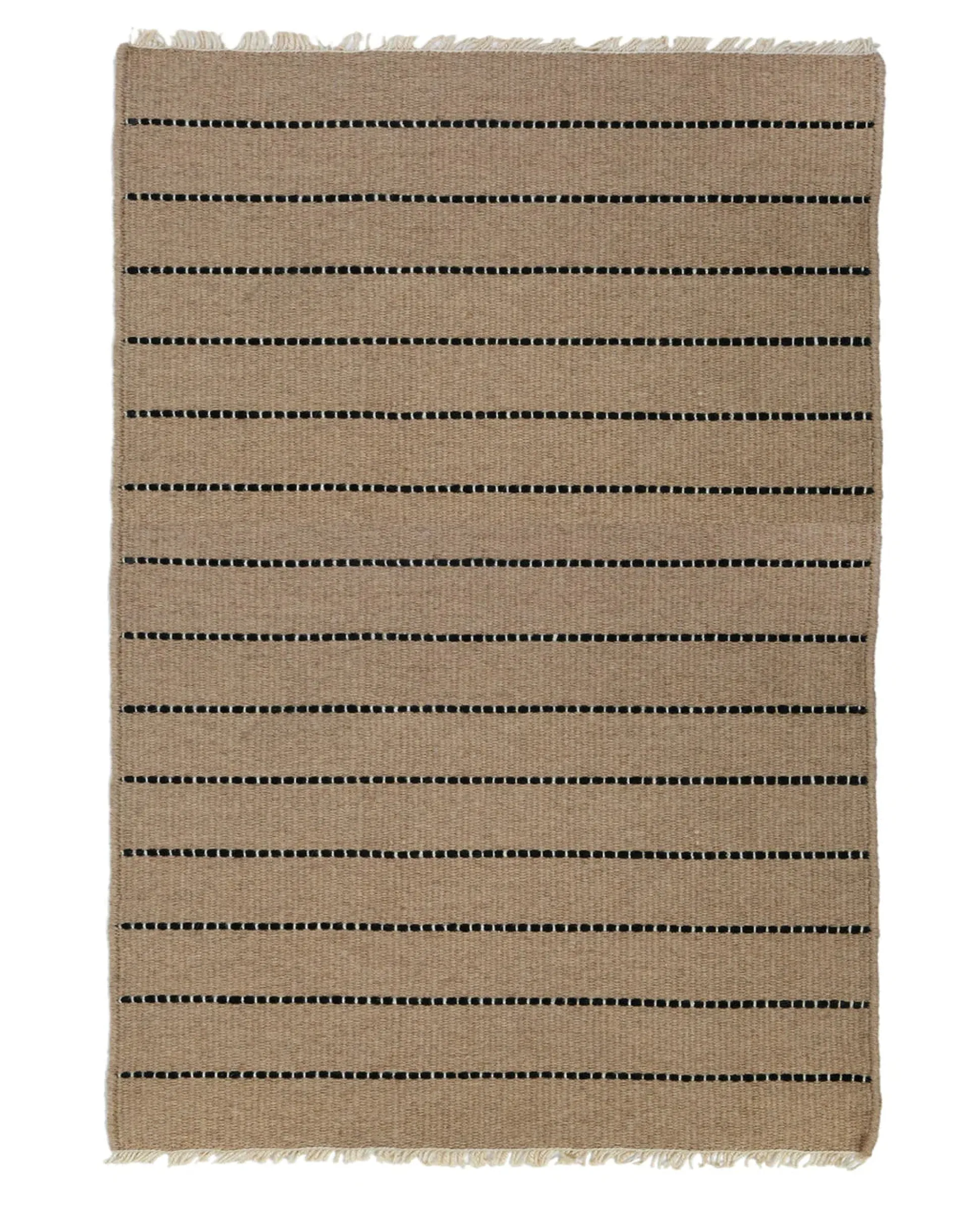 Hand-made with a mixture of natural wool and jute materials, the Warby is a classic handwoven striped rug. The stripe itself stands out with beautiful added texture. A gorgeous anchor to a large space, the Warby finishes a room perfectly. It’s a rug your guest will surely ask about!